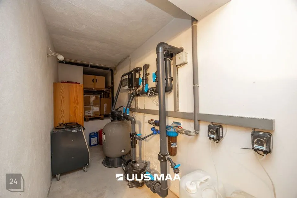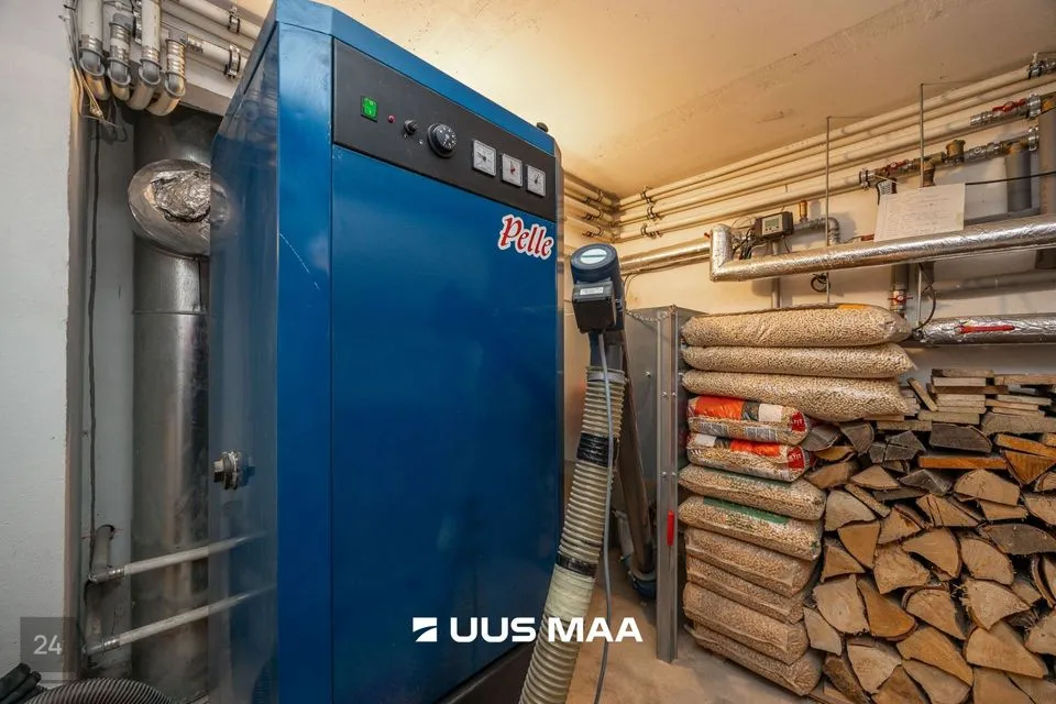 Ruum on varustatud erakorralisteks olukordadeks: olemas on 2,2 kW elektrigeneraator koos kütusevaruga mitmeks päevaks, autonoomne kütmisvõimalus, puhta vee tagavara, kaks magamiskohta ning vajalikud tööriistad ja tarvikud. Keldriruum on praktiline, funktsionaalne ja lisab majale olulist lisaväärtust.