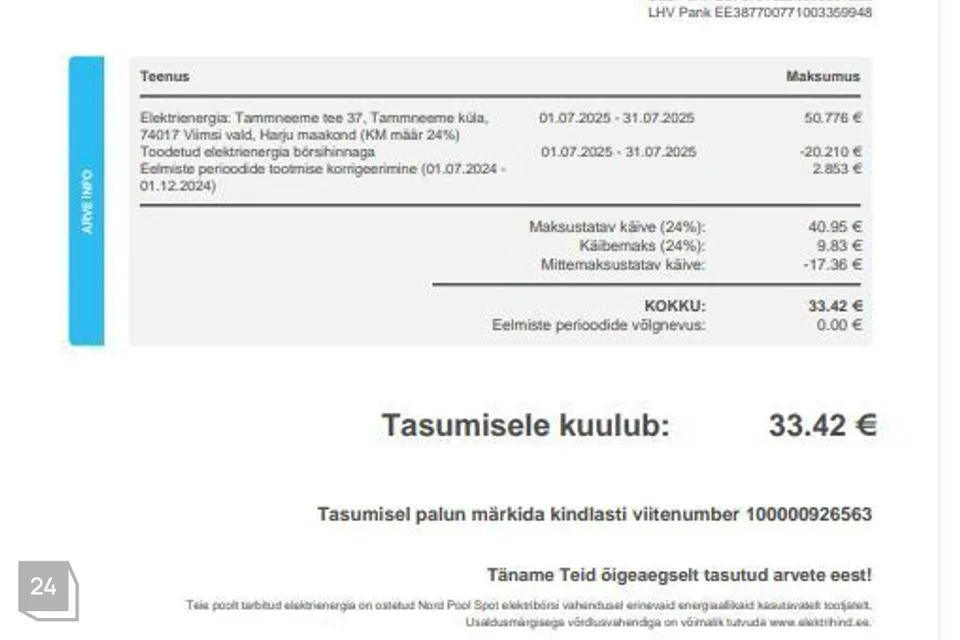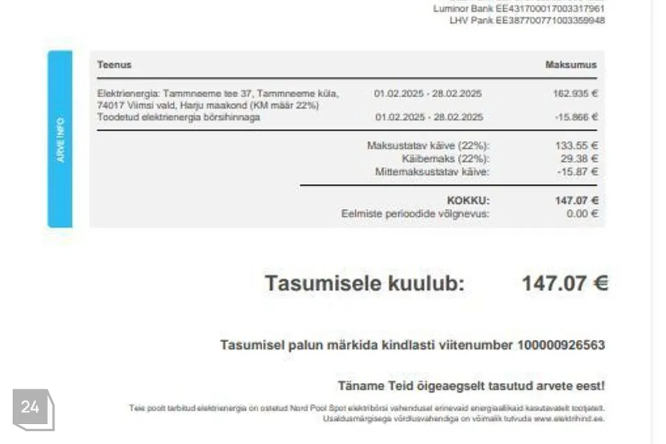 Kommunaalkulud on talvel üldiselt 300€ juures ja suvel ca 180€. Seal arvestuses on ka juba hübriidauto laadimine ja välibasseini kütmine.