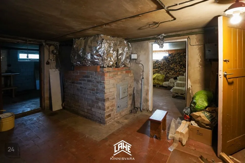Hoonel on betoonist valatud põrandatega täiskelder, kus paikneb saun koos pesu- ja eesruumiga. Keldris asub ka tahkepuidukatel ning ruumid nii hoidiste kui ka küttepuude tarbeks.