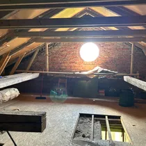 The building has 6 three-room apartments and 2 four-room apartments. The total living area is 470 m2. A second building with 2 three-room apartments is planned in the courtyard. There are two apartments on the roof floor across two floors. The roof rafters have been rebuilt according to the new apartment plan and insulation of the roof ceiling has been started. Additional information tel. 56******