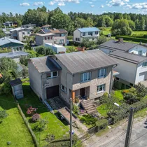 I korrus (108,5 m2): 2 koda, esik, WC-duširuum, trepikoda, köök, 2 tuba, veranda, küttematerjali ruum, garaaž
