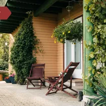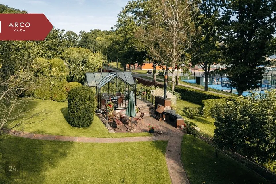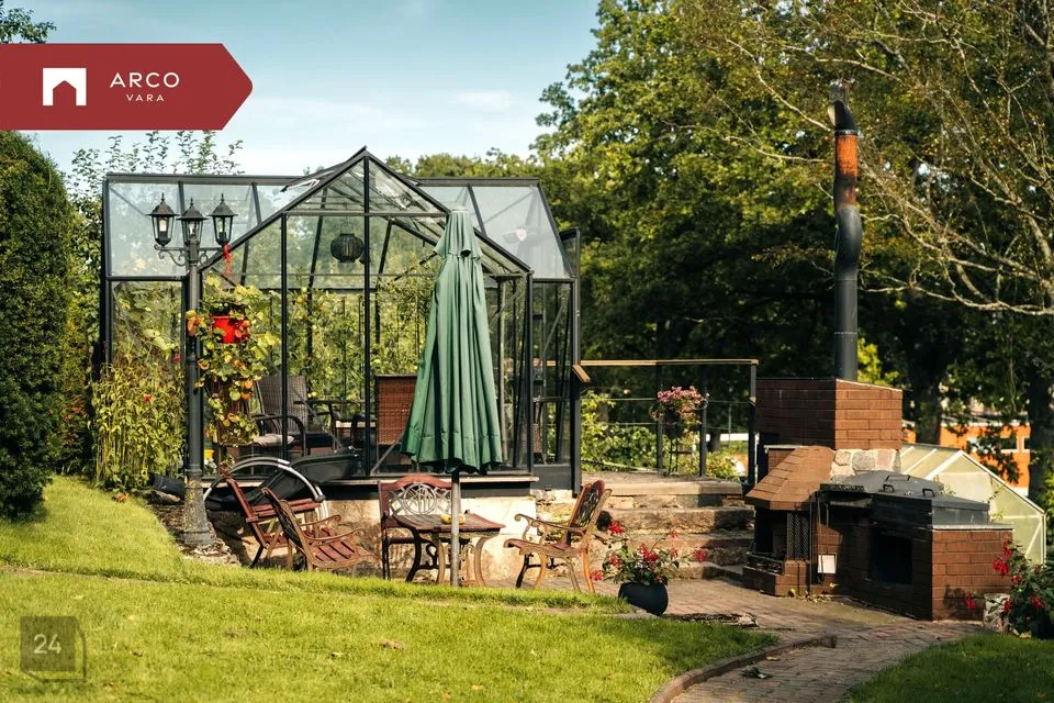 Krunt on mitmetasandiline ja hooldatud, pakkudes rohkelt ruumi ja privaatsust. Aias püüavad pilku väärikad männid ning avanevad imeliselt kaunid vaated. Lisaks on olemas kasvuhoone, mida on kasutatud talveaiana, ning mõnus väliköök.