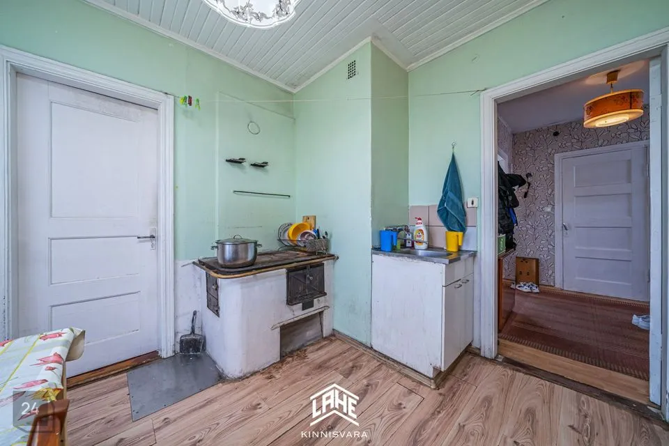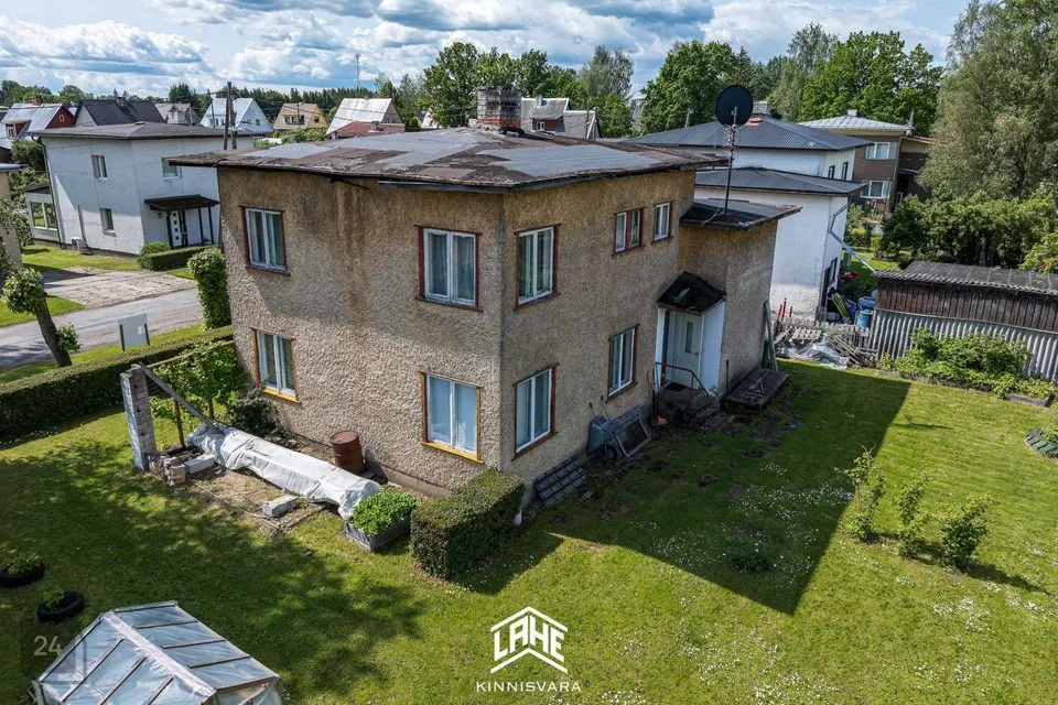 HOUSE -needs complete renovation (wooden frame house) -closed net area 163 m2 -local heating - solid fuel boiler located in the basement -dry toilet, shower room located in the basement together with a sauna room -local water and sewage system, but city network connection point is located on the street (no connection fee required).