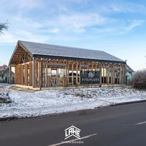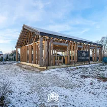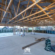 • Püsti on kogu puitkarkass, välisseinad koos akna- ja ukseavadega on olemas ning moodustavad kogu hoone kandekonstruktsiooni.