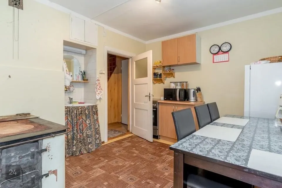 Maja saab kütta kahe ahjuga (üks esimesel korrusel ja teine teisel korrusel) Köögis puupliit soojamüüriga.