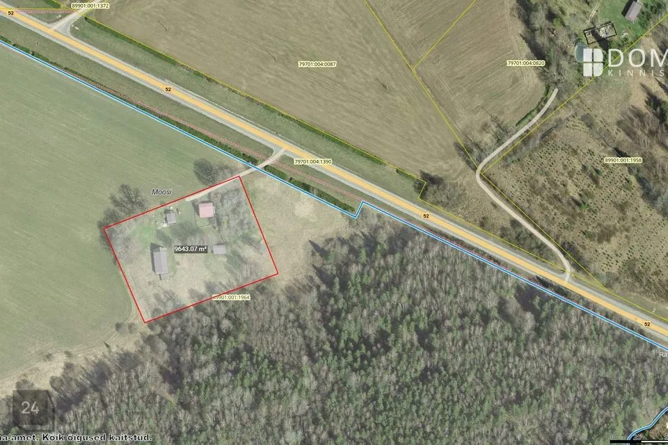 Kinnistu ümber põllud ja metsad.