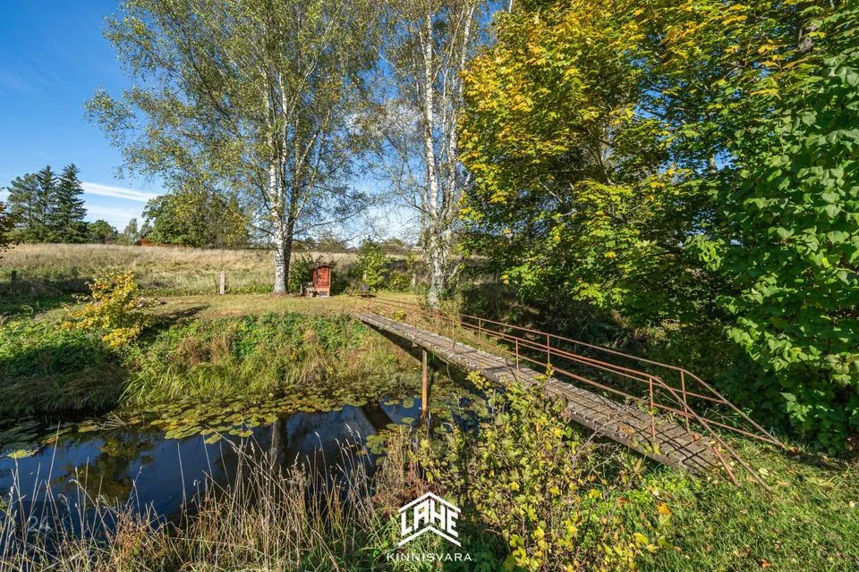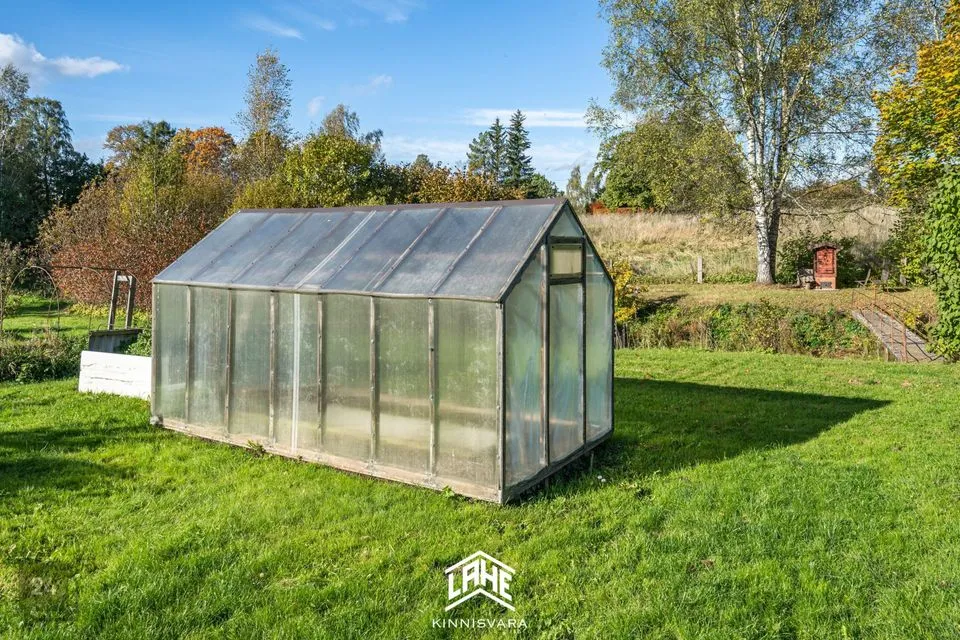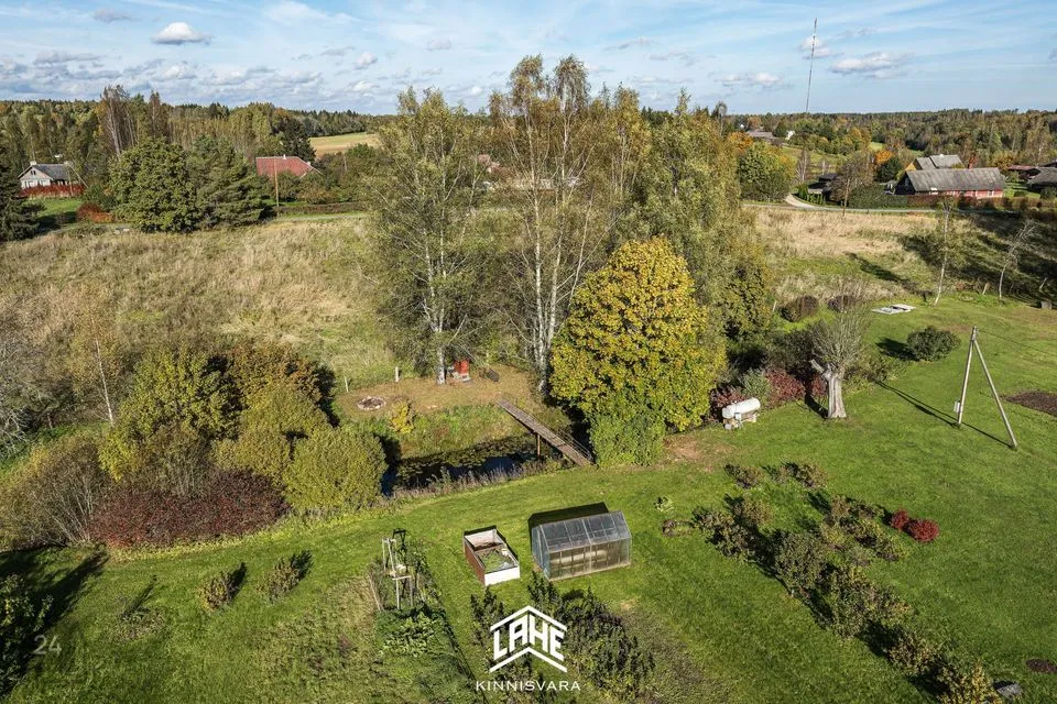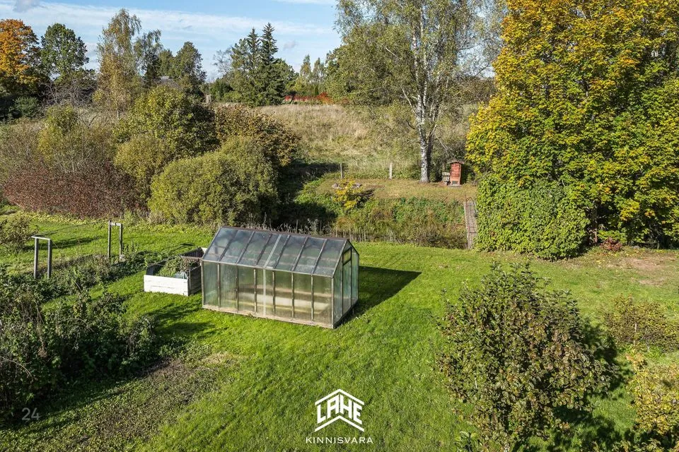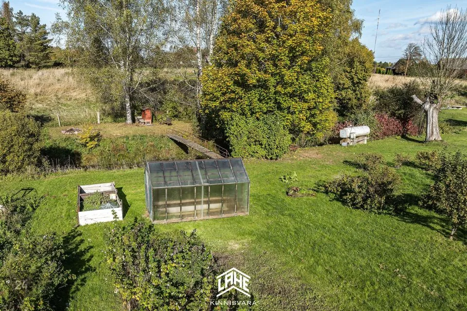 Kinnistu suurus on 1095 m², kus leidub erinevaid taimi ja puid ning väike maalapp. Maja juures asub tiik ja selle juures asub suitsuahi ja lõkkeplats.