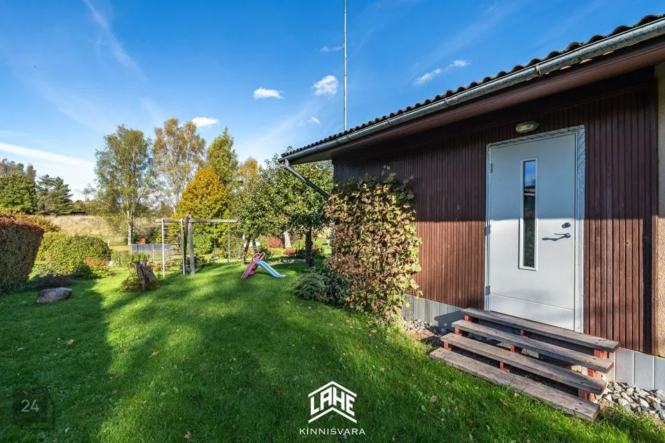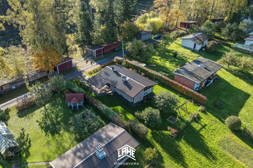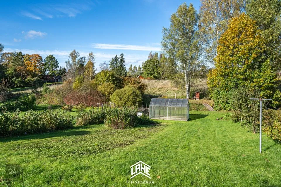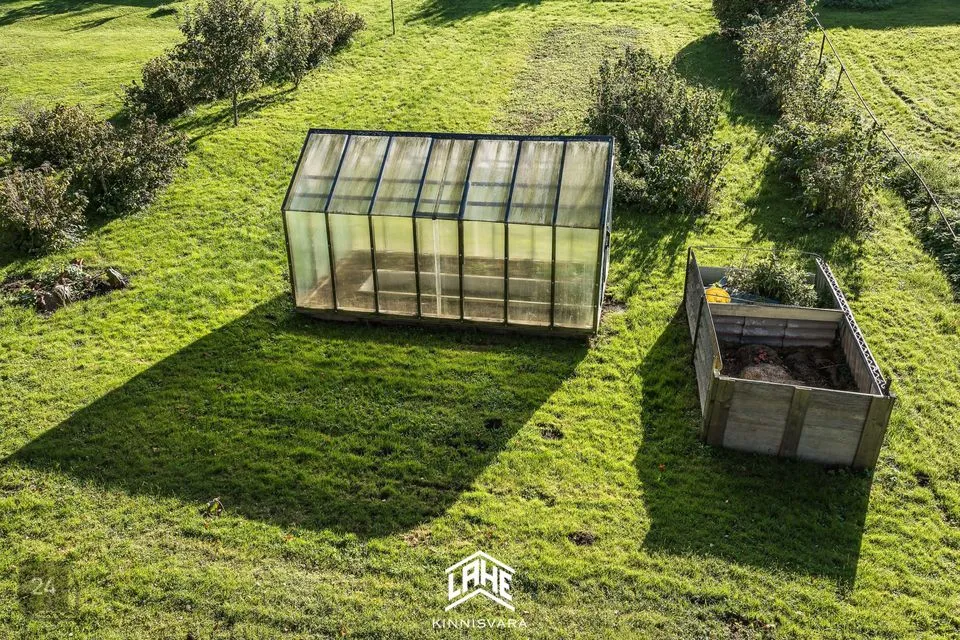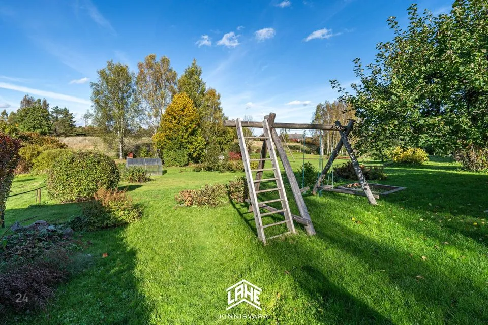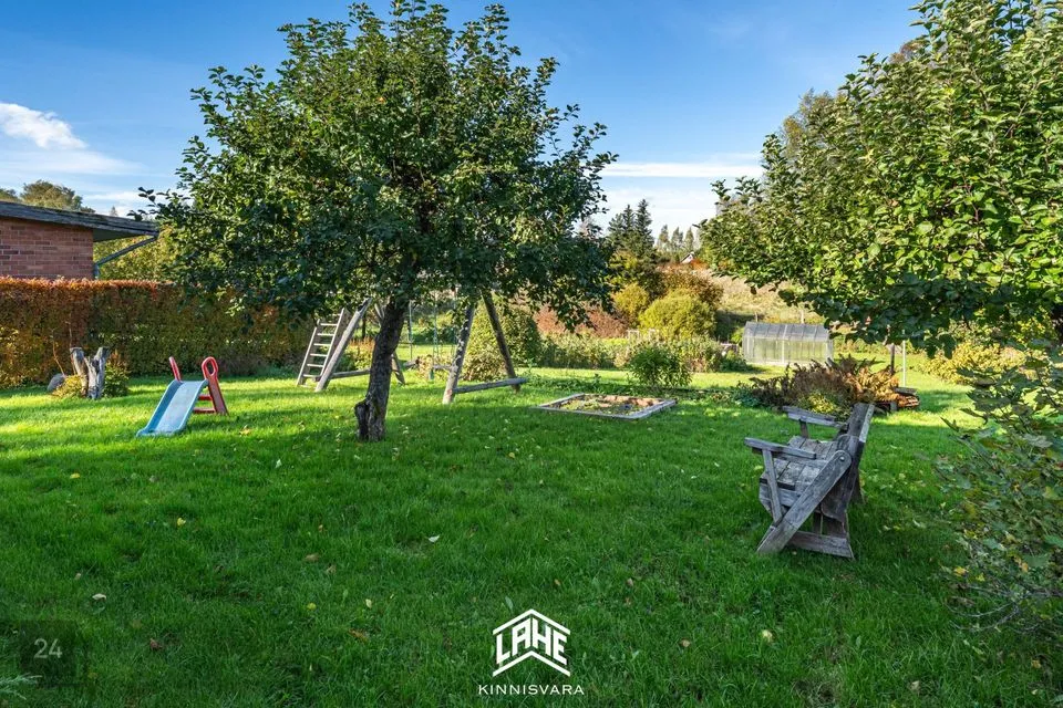 Kinnistu suurus on 1095 m², kus leidub erinevaid taimi ja puid ning väike maalapp. Maja juures asub tiik ja selle juures asub suitsuahi ja lõkkeplats.