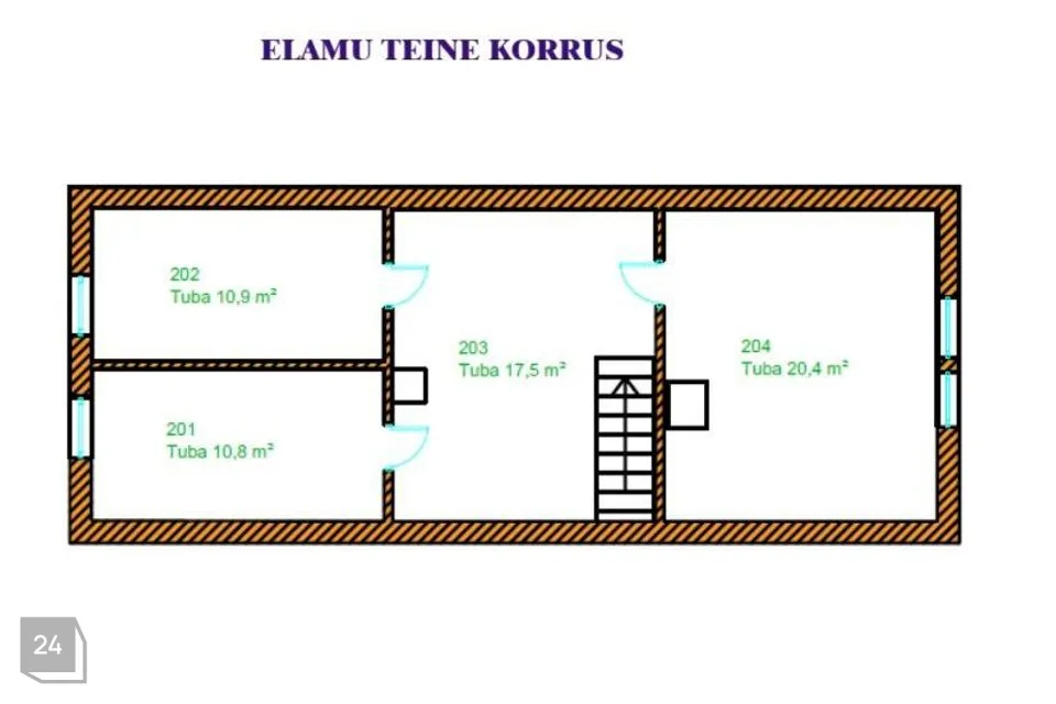 MAJAS on 4 magamistuba, elutuba, köök-söögituba, WC-vannituba, esik, trepihall.