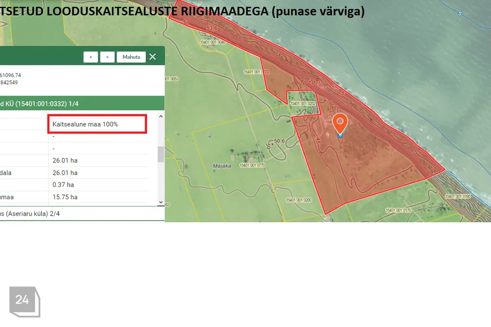 Müüa ainulaadne mereäärne pangapealne kinnistu (piirneb panga äärega). Kinnistu asub reljeefseelt kolmel kõrgusel merepinnast: (45 m; 47.5 m ja 50 m) tõustes mere poolt maa poole astangutena 7.5 m . Kinnistu kõrgem punkt võrdub 17 m. kõrguse kõrghoone kõrgusega (merepinnast) . Pankrannik mereni langeb trepjalt ca. 2.5 m. kõrguste ja 3-5 m. laiuste astmetena. Kinnistu on ümbritsetud mere poolt ja külgedelt riigimaadega, mis on looduskaitsealused ja ehituskeeluga.