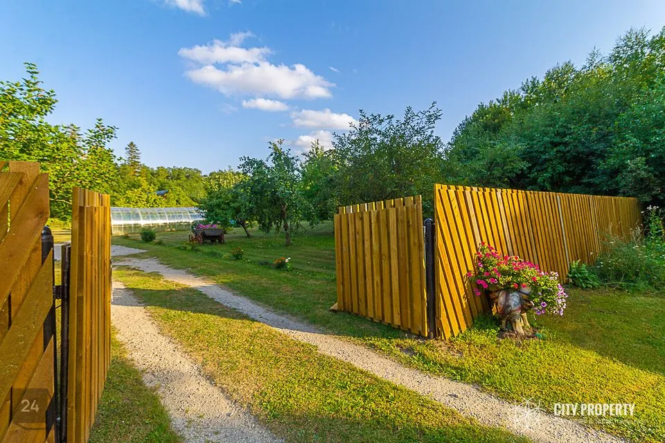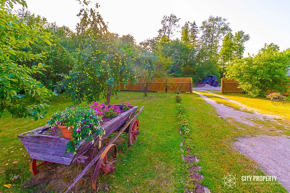 Kogu selle kauni kinnistu suurus on 5,11 ha, sellest umbes 1 ha hooldatud õue ala ja 4 ha metsa. Hoovi peal on kaks hubast maja, garaaž kolmele autole, kuurid, kasvuhoone ja kanala. Krundil on viljapuud, marjapõõsad, lillepeenrad ning samuti kartulipõld ja köögiviljade peenar. Hoovis on olemas ka tiik.