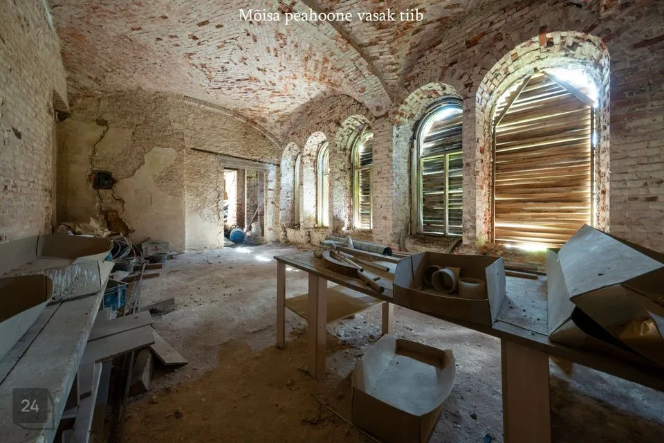 • Mõisa peahoone- suletud netopind 1654m2. Hoone teiselt korruselt avanevad vaated merele. Katus ja vahelaed on enamuses hävinud. Säilinud on hoone välisseinad. Hoone paremas tiivas, esimesel korrusel on laotud uued siseseinad ja valatud uus põrand. Soklikorrus on taastatud ja ehitatud täiskorruseks. Valatud on enamus betoonpõrandast.