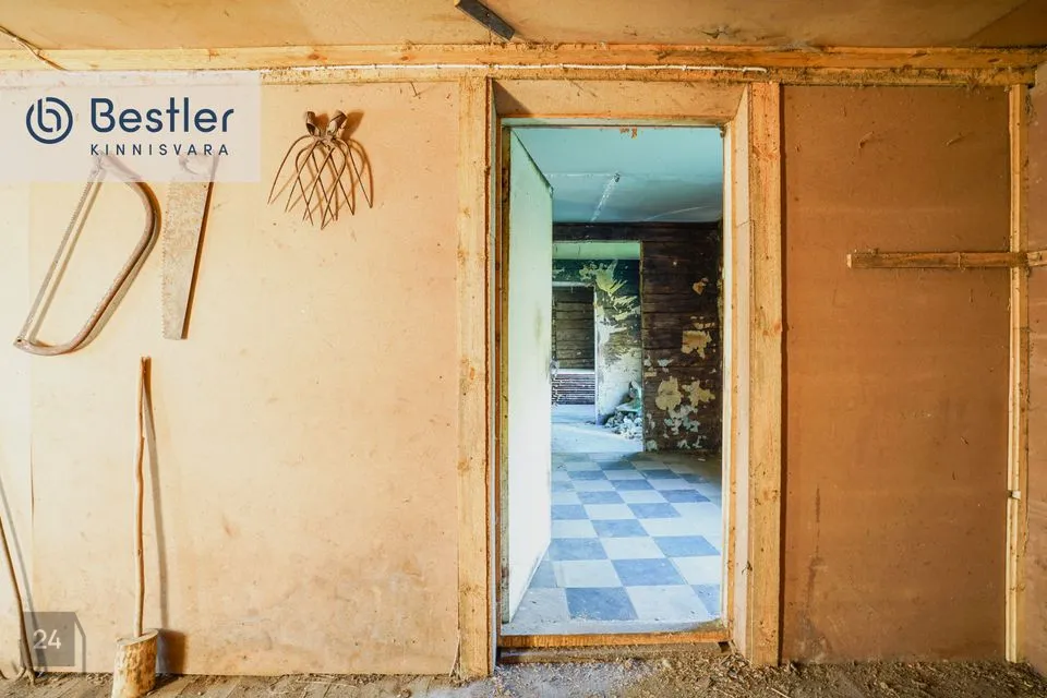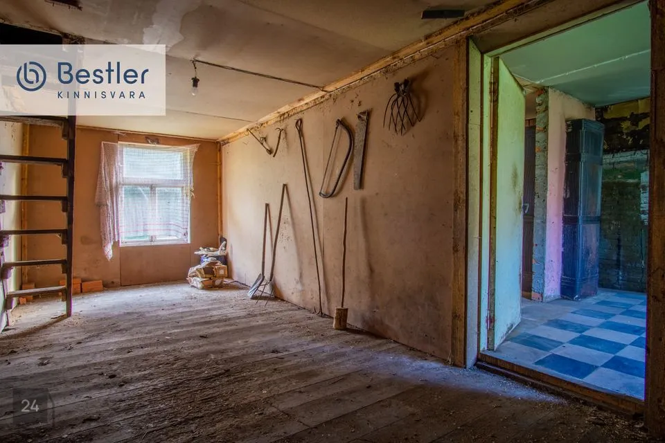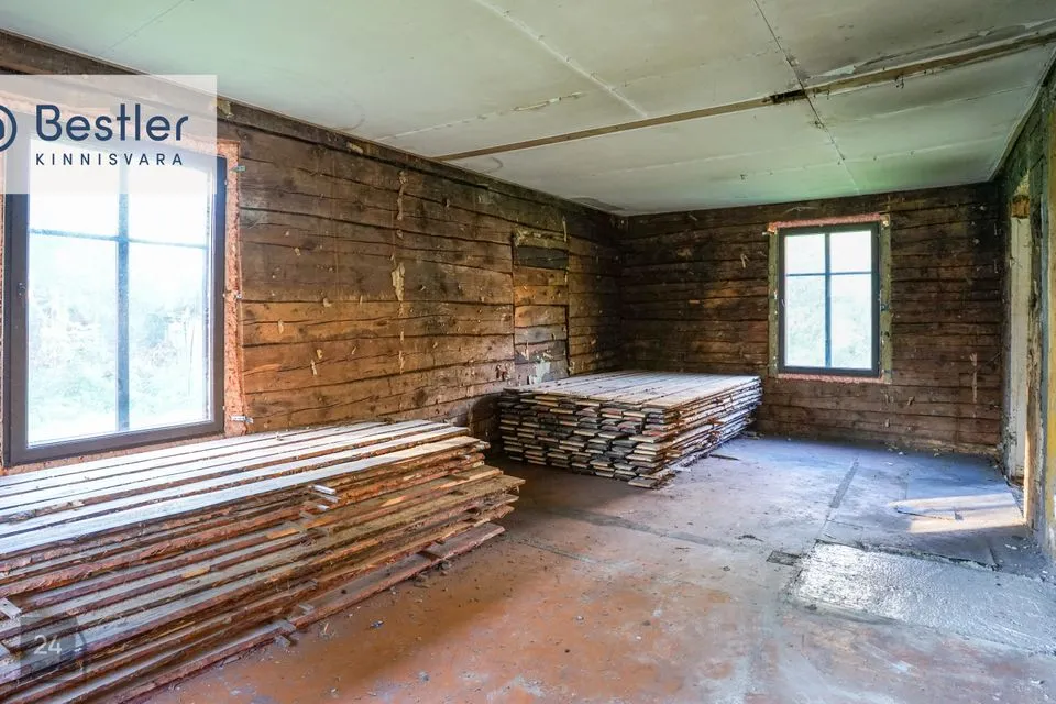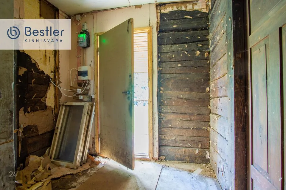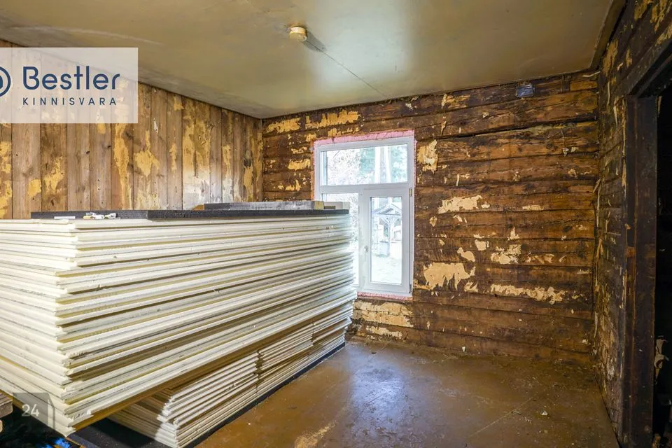 Kinnistul on vanem palkmaja, mis vajab kapitaalremonti. Alustatud on remondiga, osad vaheseinad on eemaldatud. Paigaldatud on plastaknad (osad fotod on tehtud enne akende vahetust) . Majja on toodud servamata männilauda (pikkus 2,4 m) ja soojustusmaterjali "Kingspan". Olemas on elektriühendus ja puhastamist vajav salvkaev. Metsa serval on vana lagunenud maakivivundament, millest võib alguse saada grillimaja ehitus või midagi muud sobivat.
