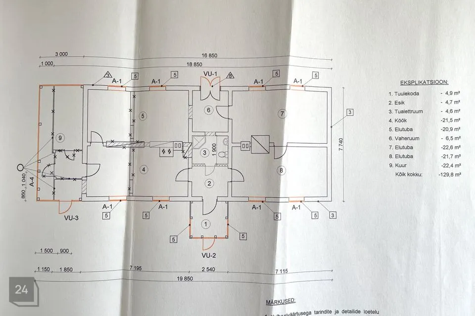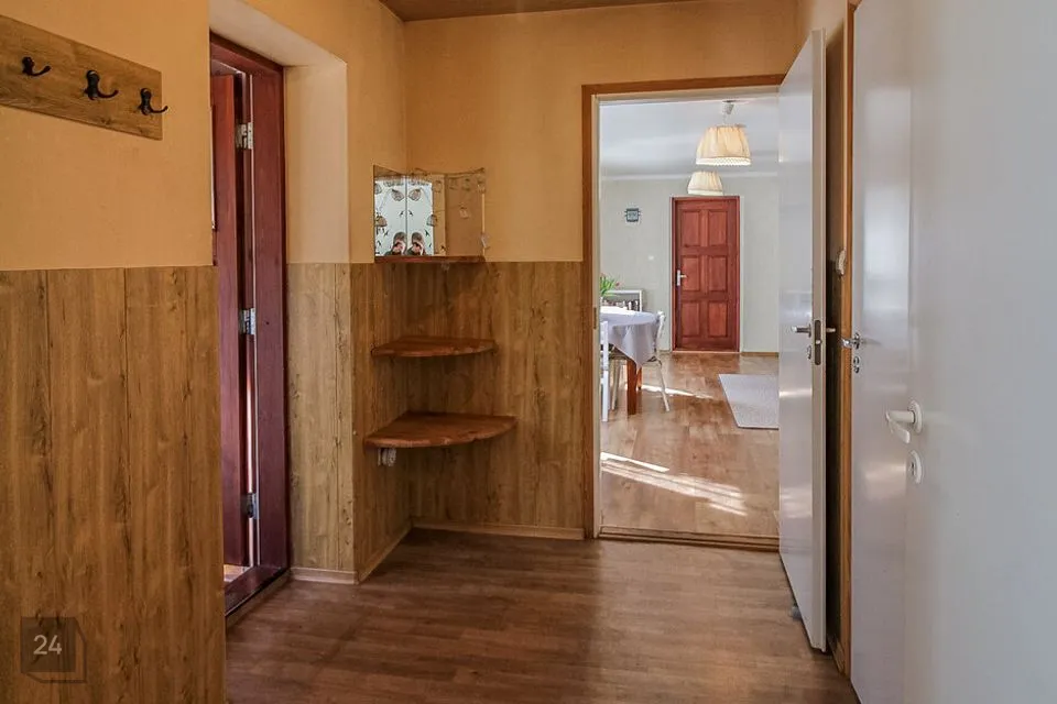 Majas asub 3 tuba ja elupinnaks on 102,5 m². Ühekorruseline hoone on planeeringult jaotatud kaheks tiivaks, mille koridorist pääseb avarasse kööki, vanni- ja tualettruumi ning elutuppa. Maja tagumisesse osasse jäävad mõlemad magamistoad, millest ühte pääseb köögi ja teise elutoa kaudu. Kõik ruumid on väga avarad ja valgusküllased ning seejuures eraldiseisvad. Maitsekalt lahendatud köögis on olemas mahukas ja suure töötasapinnaga köögimööbel. Lisaks mahub kööki suure pere söögilaud ning jõulude ajal jääb veel kuuselegi ruumi. Köögis on olemas elektripliit, ahi, kubu ja sisseehitatud külmkapp. Eriliselt maitsvad road saab valmistada olemasoleva puupliidiga. Köögist on pääs maja külge ehitatud kuuri, kus on mugav hoiustada majapidamistarvikuid ja kust on talvisel perioodil mugav puid tuua. Hoone katusealune on väljaehitamata.