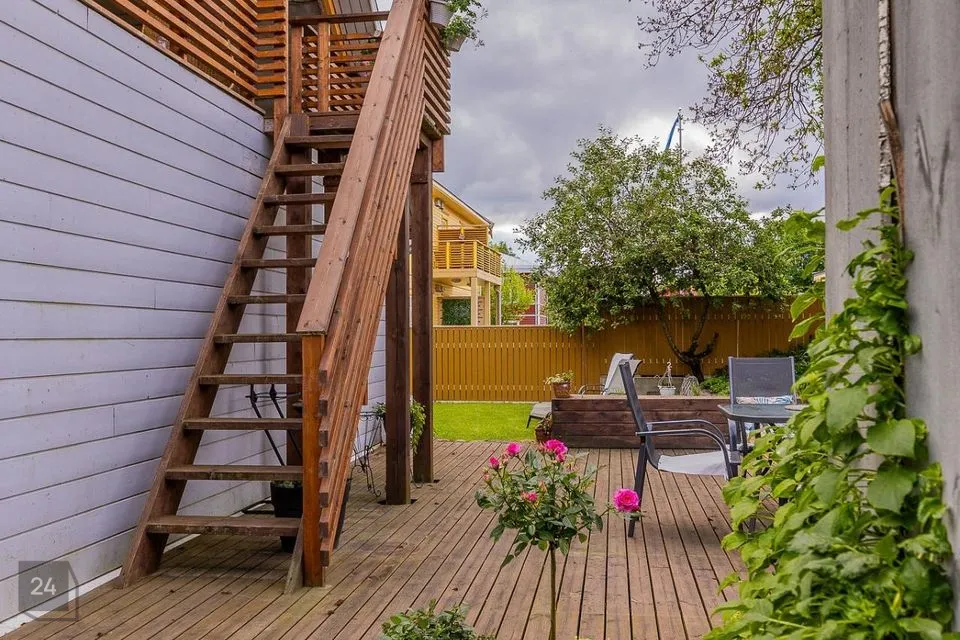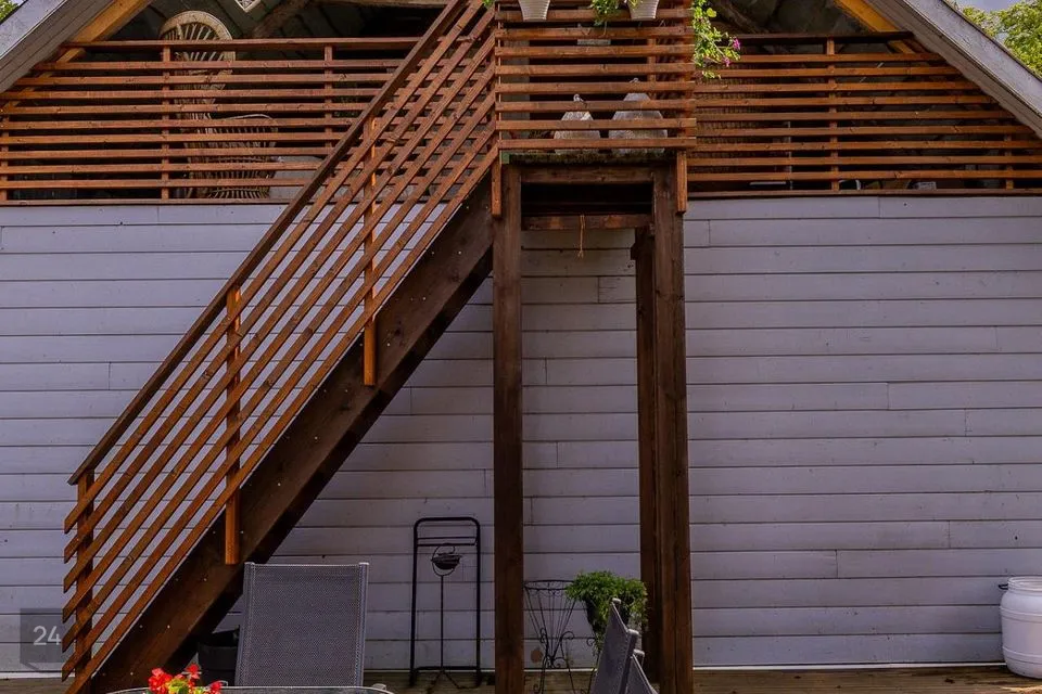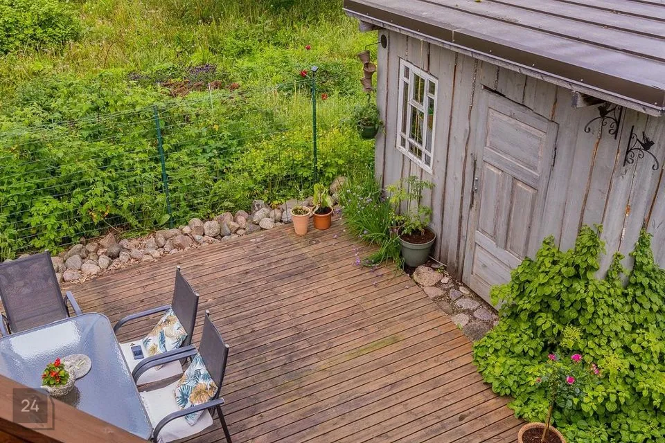 Terrassilt viib trepp elumajja ülesse korrusele suvetuppa, kus on suvise vihma ajal mõnus raamatut lugeda või niisama oma mõtteid mõlgutada. Suvetoas on olemas elekter.