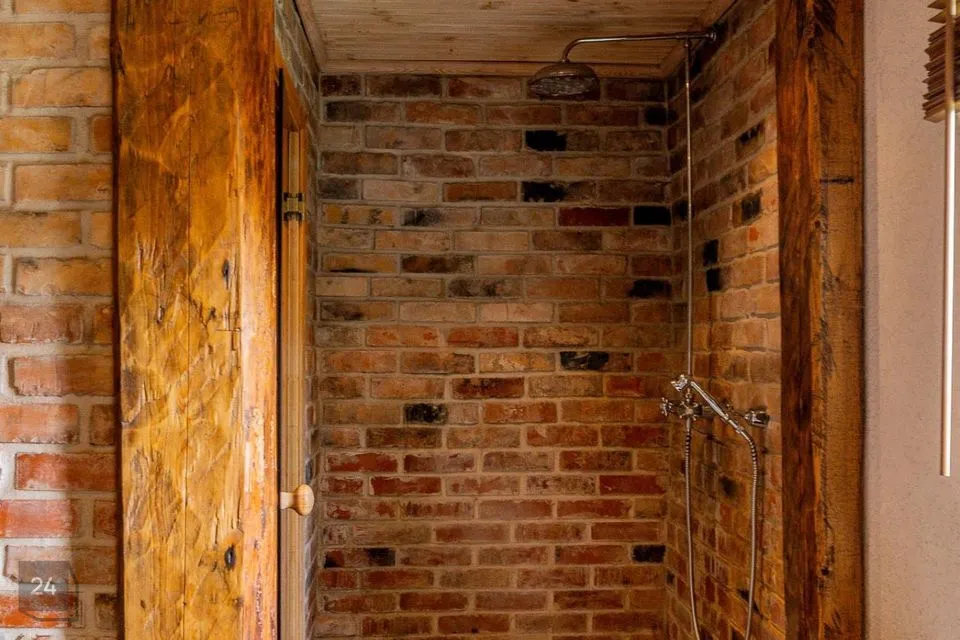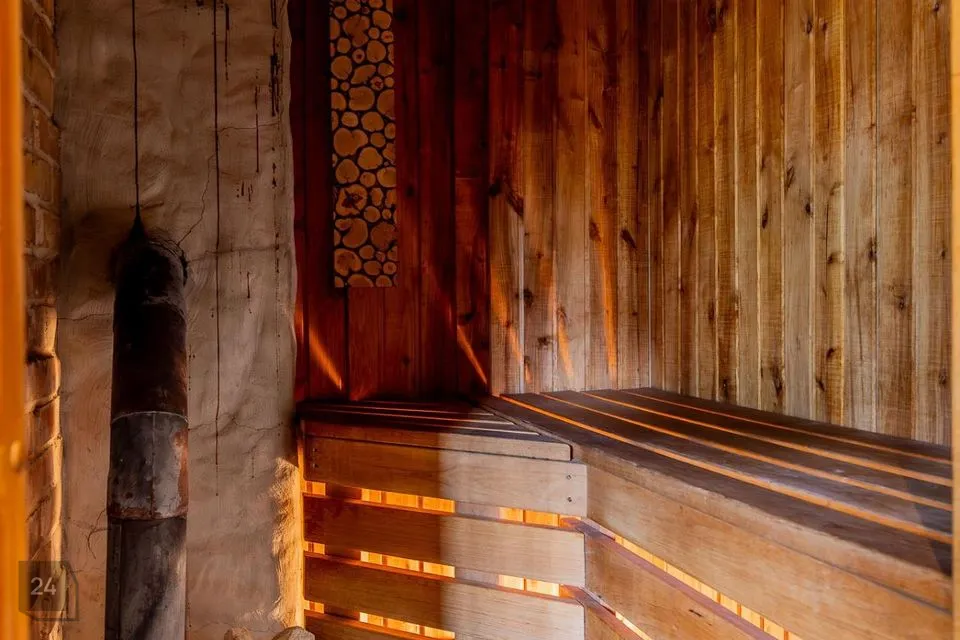 Majja sisenedes jõuame esikusse, mille põrandat katab keraamiline plaat. Esikust kohe otse jäävad kaks panipaika. Vasakule pöörates jääb piklik koridor, mida mööda pääseb muudesse tubadesse ja ruumidesse elumajas. Koridorist esimene uks vasakule viib avarasse vannituppa, kus asub ka wc ning puuküttekerisega saun. Vannitoas on põrandaküte ning valmidus vanni paigaldamiseks. Kivisein dušši taga, on selle maja algsetest kividest. Saun ja vannituba on mõõtudelt 24 m². Vannitoas on olemas ka puuküttega ahi, mis läheb väga kiiresti soojaks ja on samuti maja kütteallikaks.