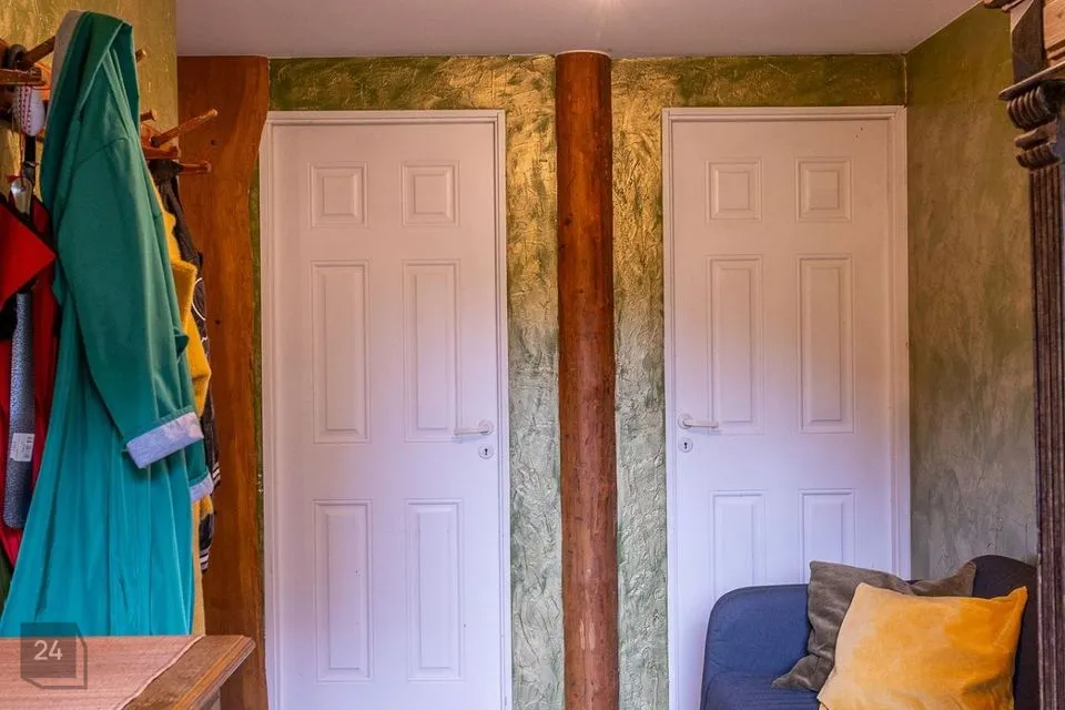 Elutoast läbi minnes, pöörates paremale jääb teine magamistuba, mille üheks seinaks on uue viimistluse saanud antud maja vana põranda lauad.