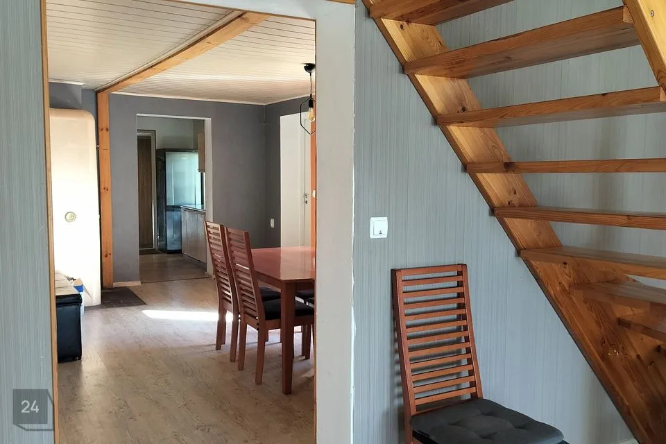 Esimesel korrusel asuvad: köök, sahver, neli tuba, wc/duširuum, veranda.