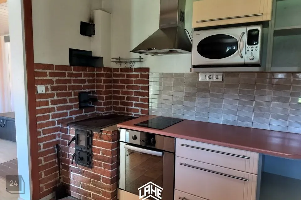 Müügihinna sees on mööbel ja köögitehnika: keraamiline pliit, praeahi, kubu, mikrolaineahi, külmkapp ja nõudepesumasin.