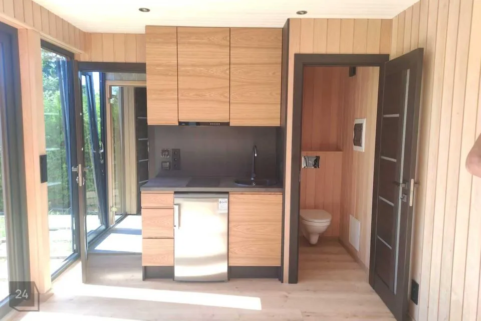 Valmismaja ( võtmed kätte pakett ) hind on 29900.- sisaldab km. Hinnas on kogu maja sisustus ja tehnika nagu köögimööbel koos külmiku, pliidi, pliidikubu, kraanikausi ja segistiga. Hinnas on ka kvaliteetne integreeritud wc pott, duššilift koos segistiga ja nägus iseõppiv nutikas veeboiler. Saunamajas saab valida kas puu või elektrikerise vahel.