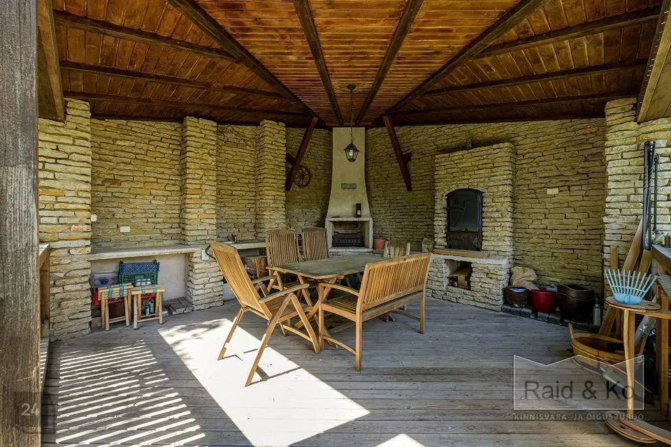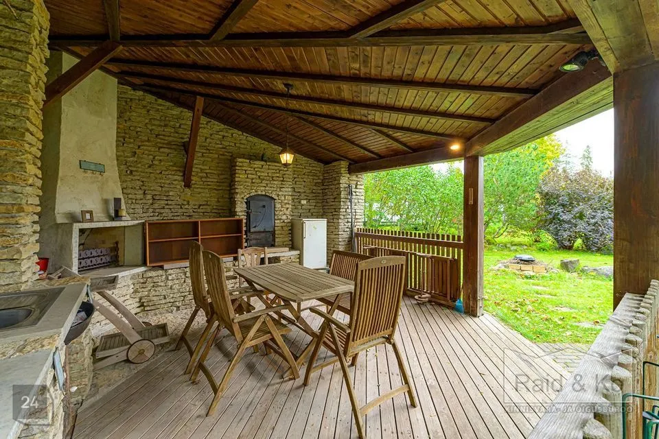 Maja asub hoolitsetud ja ilusti haljastatud krundil. Siin on kaunid lillepeenrad ning istutatud on nii dekoratiivseid kui ka viljapuid ning põõsaid. Krundil on hubane suveköök söögialaga, kus on grill ja suitsuahi.
