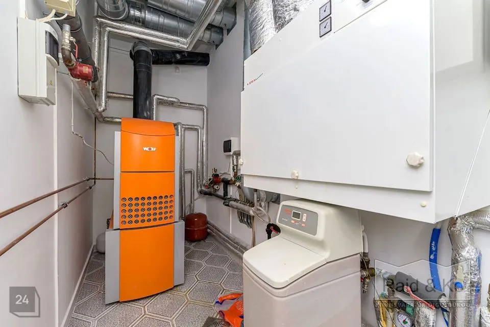 Maja kütmiseks on paigaldatud Saksa ettevõtte WOLF malmist gaasikatel, mis tagab majanduslikult ökonoomse kuid tõhusa küte. Majas on autonoomselt reguleeritav põrandaküte, mis võimaldab luua mugava sisekliima. Puhta ja värske õhu tagamiseks kasutatakse Soome standarditele vastavat soojustagastusega sundventilatsiooni süsteemi, mis tagab õhu täieliku uuendamise majas kahe tunni jooksul. Kuum vesi tuleb 200-liitrisest boilerist.