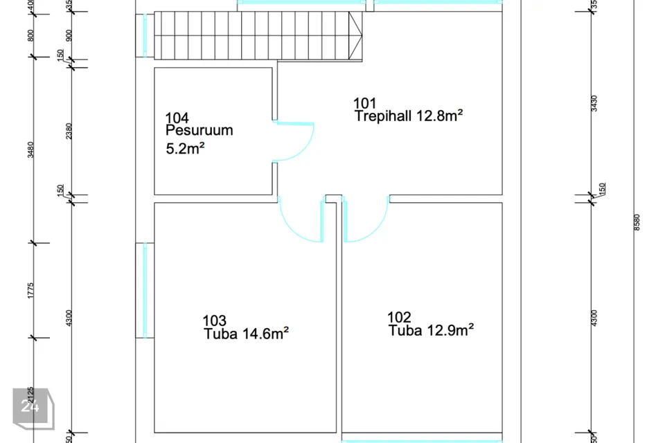 II korrus.Trepihall 12,8m² (soovi korral võimalik tekitada lisatuba).