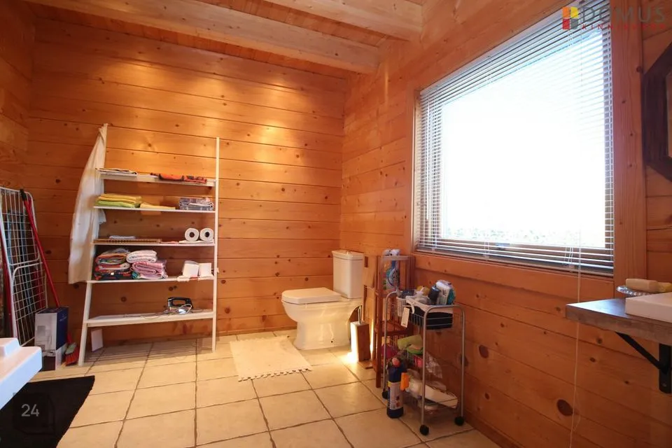Majas on kolm tuba ja kaks tualelettruumi . Alumisel korrusel on suur avatud köök, elutuba, vannituba ja tehnoruum. Elutoast on pääs suurele terrassile. Köögiks on köögisaar, koos vajaminema tehnikaga.