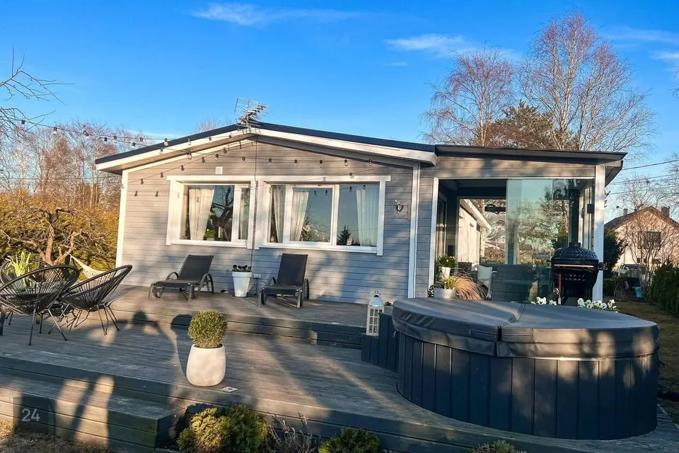 Ümber maja on 75m2 terrass, kõrghaljastus ja privaatne sisehoov. Aias on kasvuhoone ja taimekasvatus ala. Lisaks jääb uutele elanikele kuur 15m2, niitmisrobot ja kümblustünn.