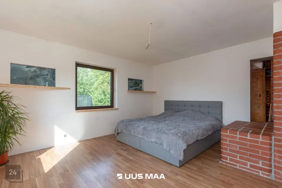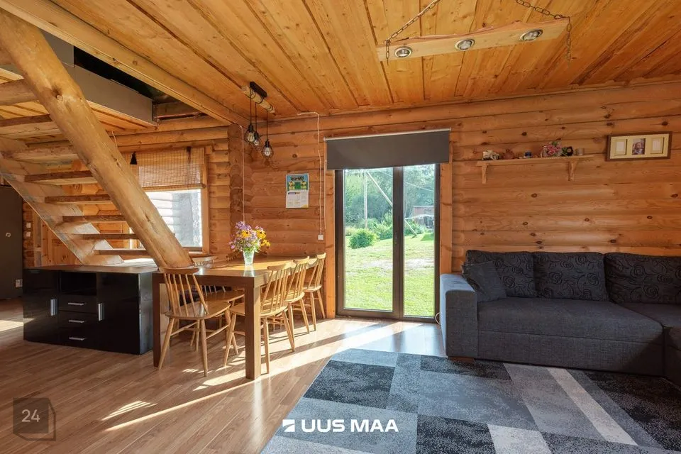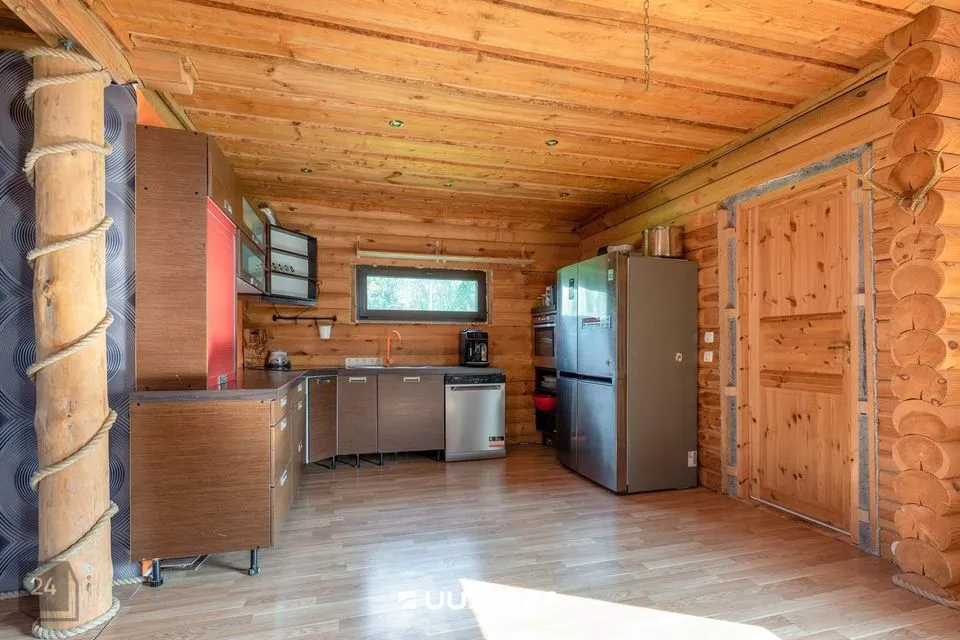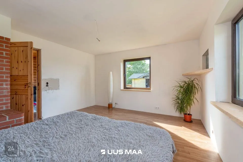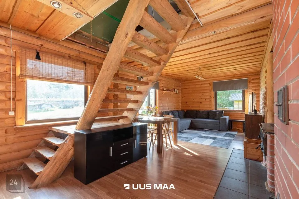 * Põrandatel on valdavalt laminaatparkett, sanitaarruumides on keraamilised plaadid. Esimesel korrusel on palgist seinad ning teisel korrusel ja esimese korruse magamistoas on seinad viimistletud värvkattega. Laed on viimistletud valdavalt laudise ja värvkattega.