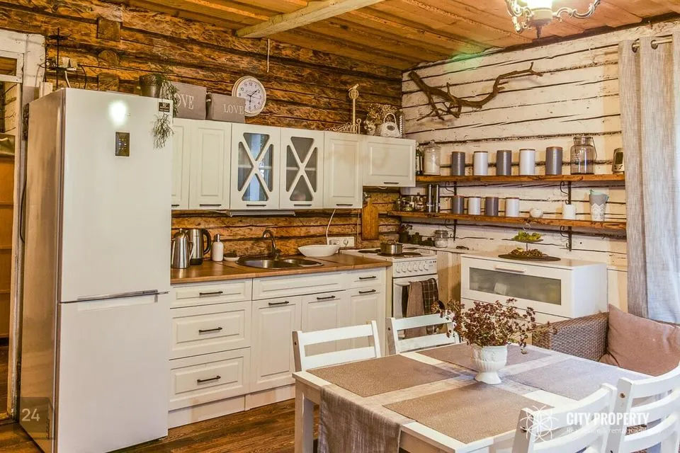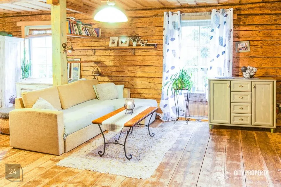 Talu esimese korruse kõik seinad on taastatud vanaaegsest palgist. Teine korrus on soojustatud purvahuga.