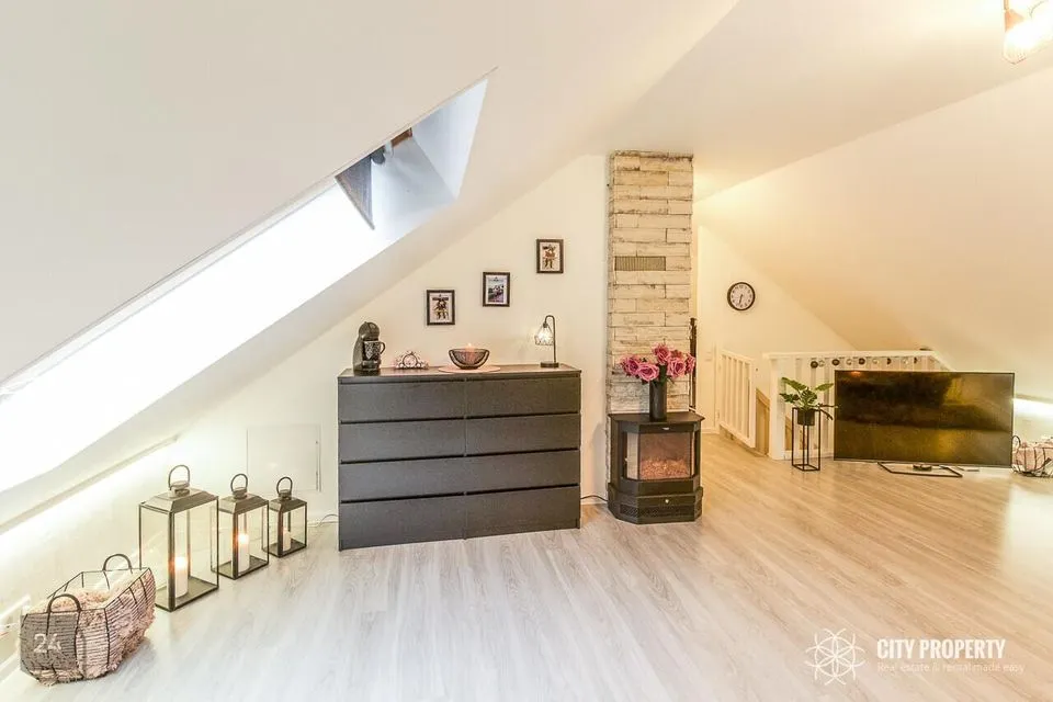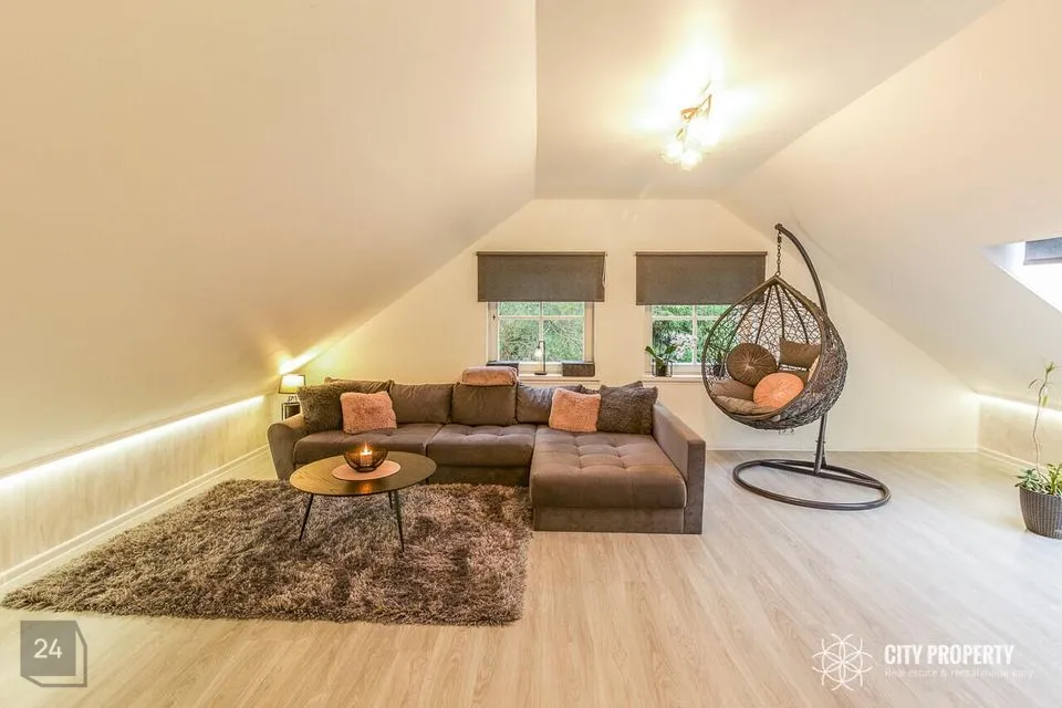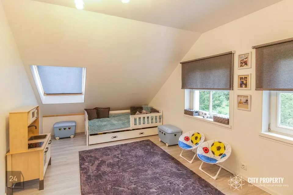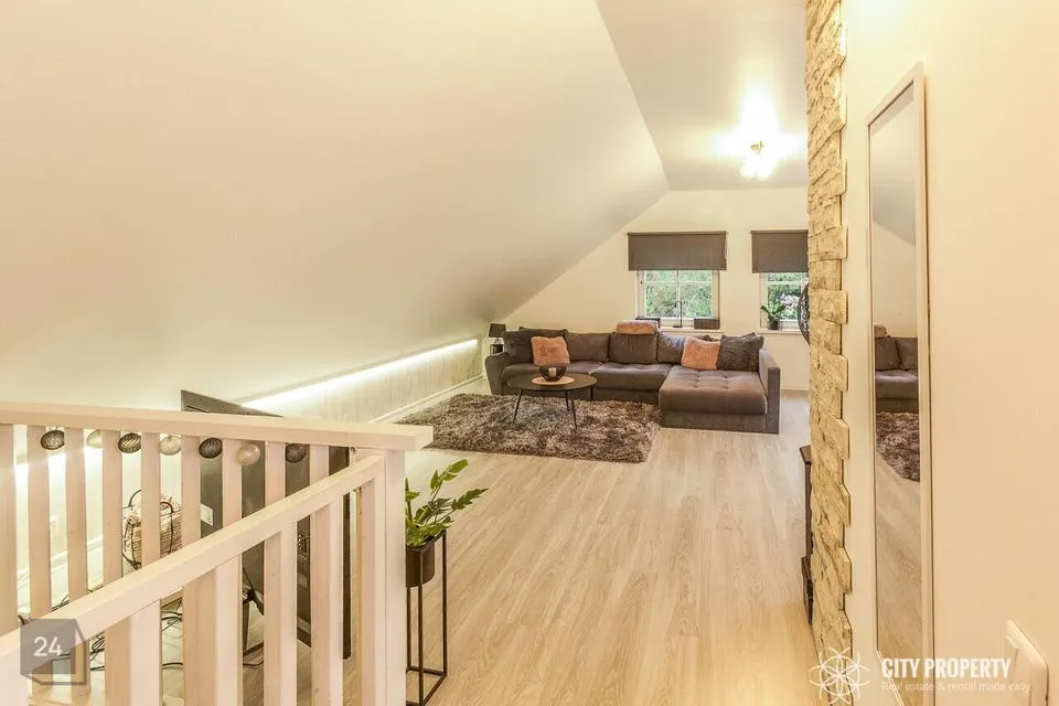 Maja on ehitatud avara planeeringuga ning maja taga hoovi pool on avar terrass, mis on kaetud laudisega. Kinnistut kaunistab muruvaip ja samuti erinevad kiviktaimlad koos aiamajaga. Krundi piirdeks on osaliselt istutatud lehtpuu hekk.