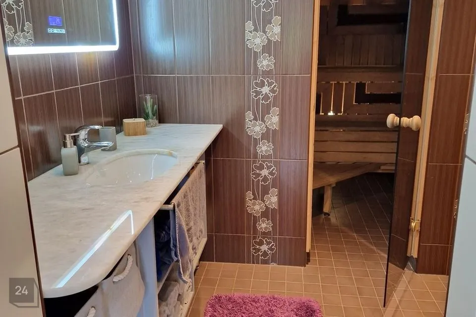 Lisaks on kaks tuba, eraldi WC ja suur vannituba kust on pääs ka puuküttega sauna.