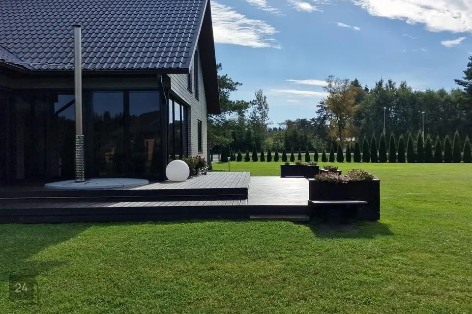 Maja hoovis kasvavad kvaliteetsed Smaragd elupuud ning kaunis roheline muru. Hoov on täielikult ümbritsetud 1,5 m 3d paneelaiaga. Sissesõidutee ja maja ümbrus kaetud tänavakiviga (ca 550m2).