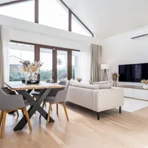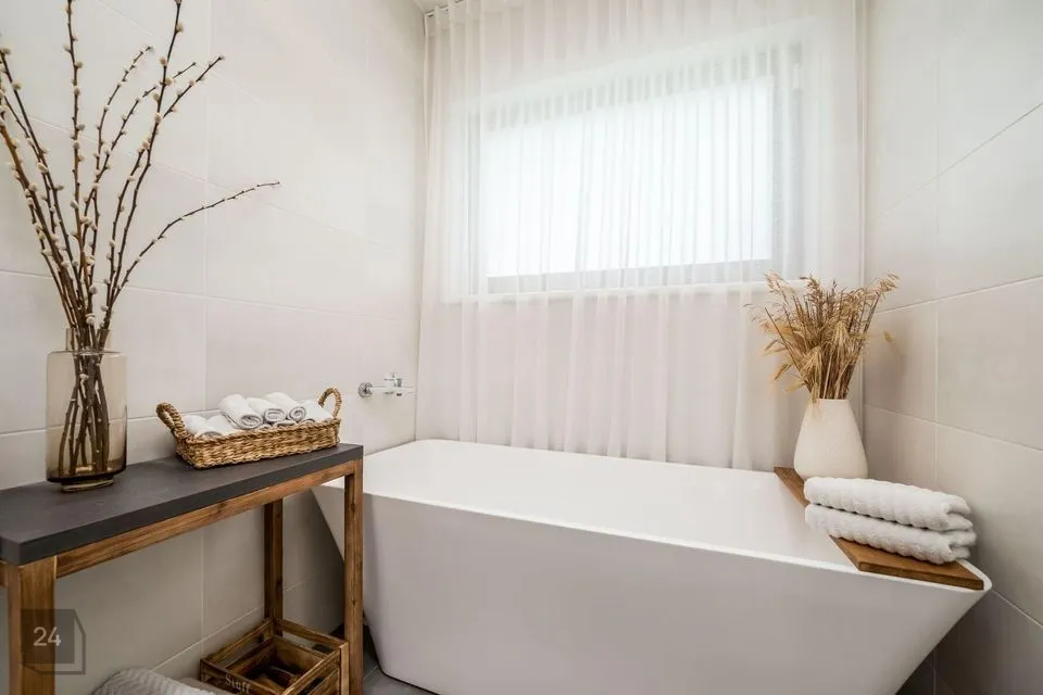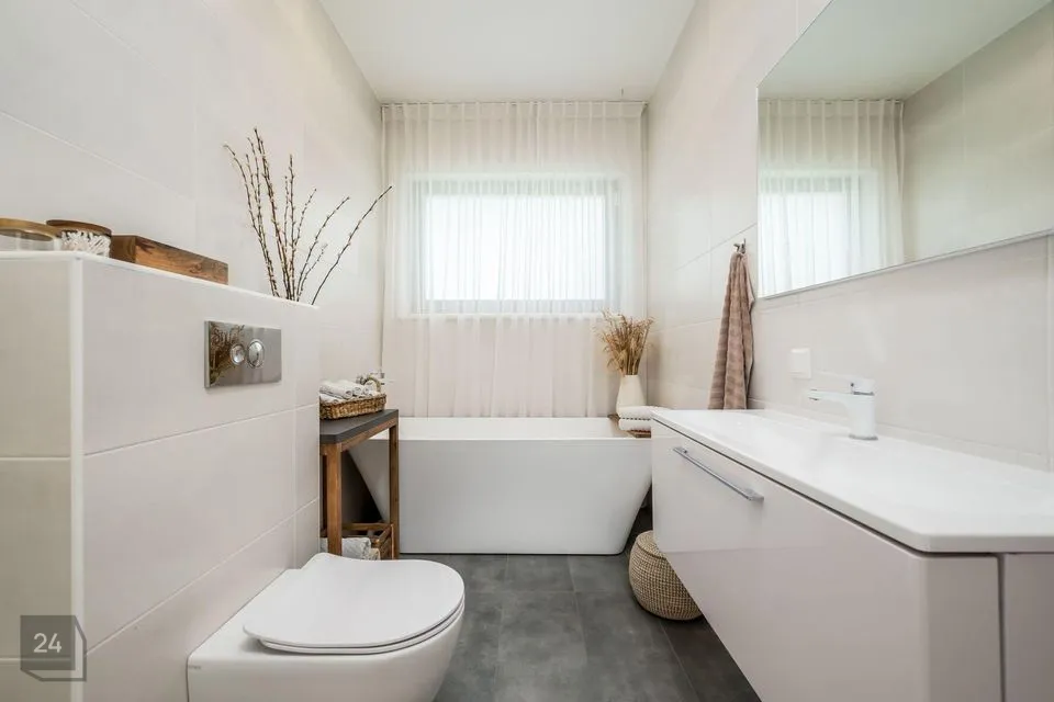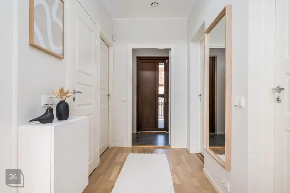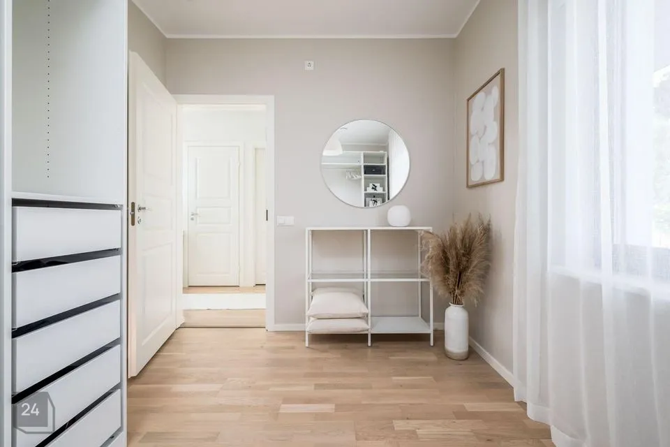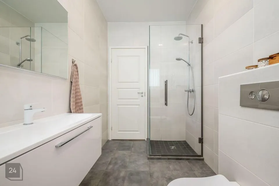 • Eramu tubade põrandad on kaetud naturaalse tammepuitparketiga ja niisked ruumid heledal toonil keraamilise põrandaplaadiga