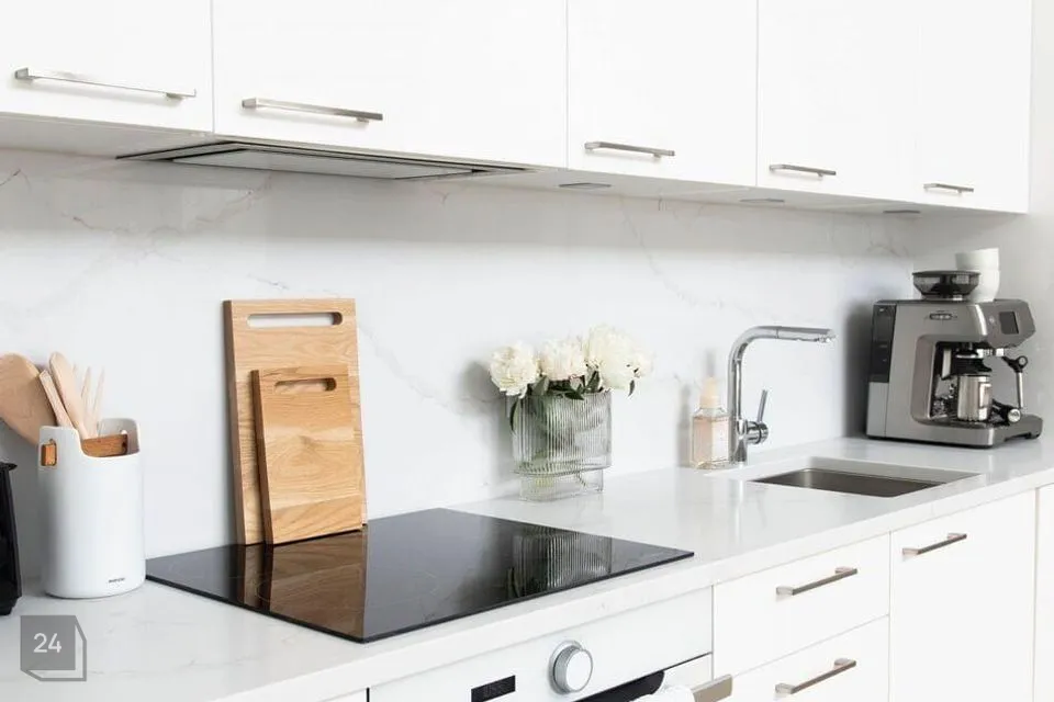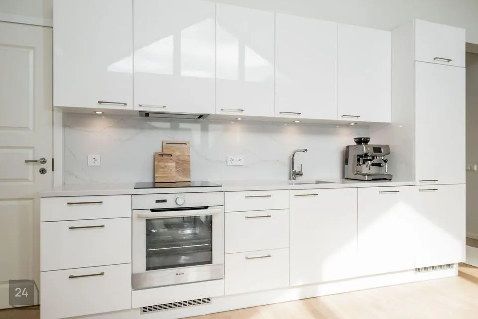 • Viigardi mööblisalongi eritellimusköök. Nerostein kvartsist tasapind ja köögitagus