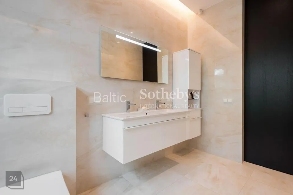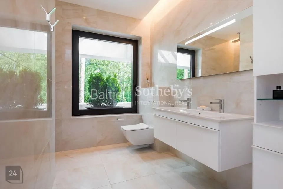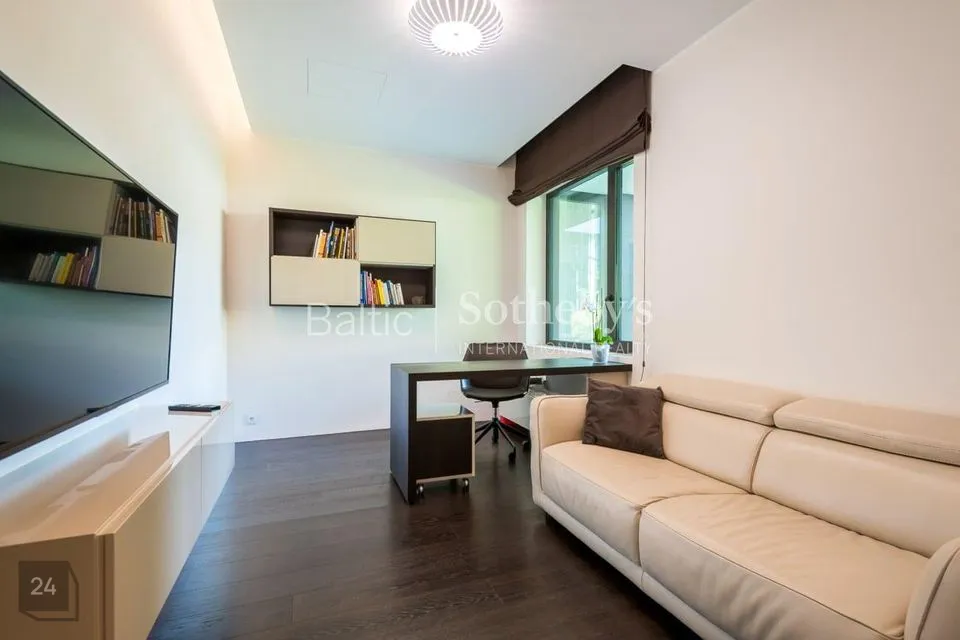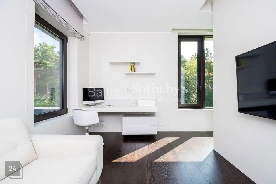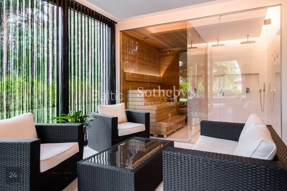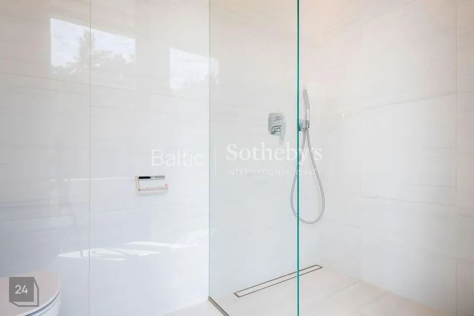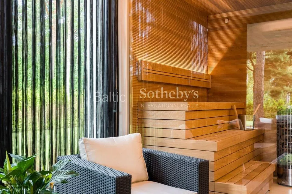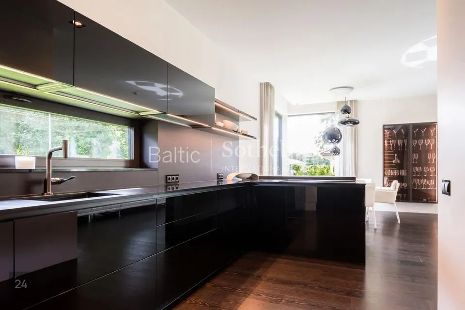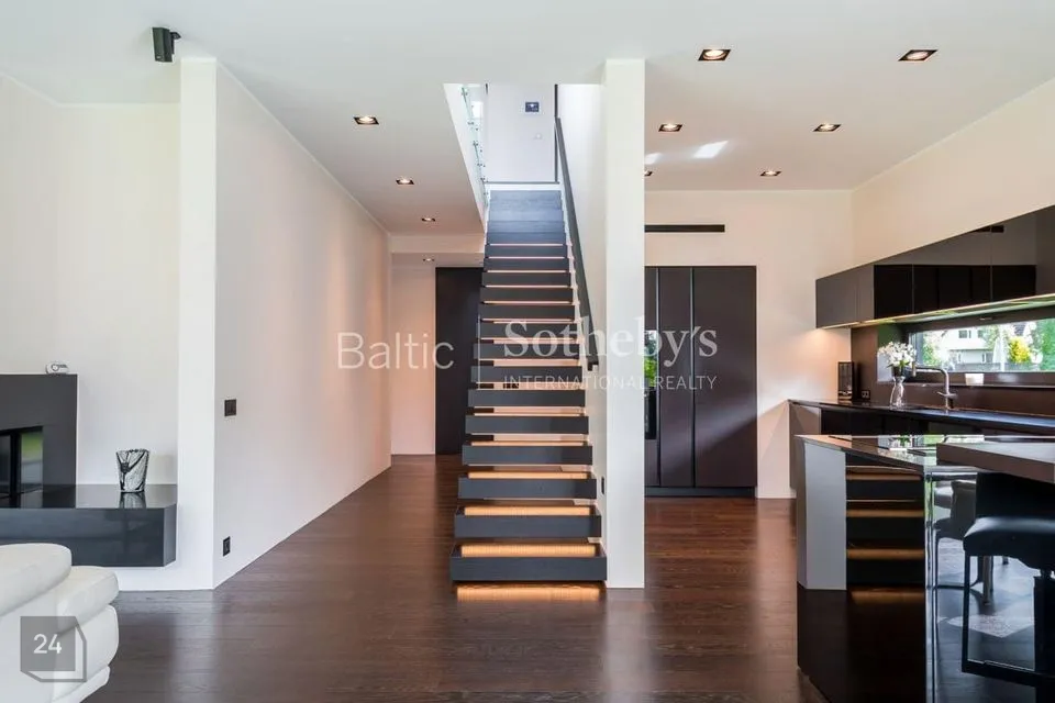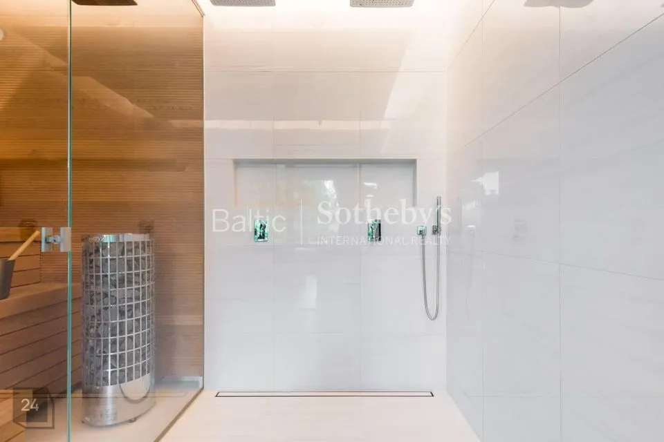 Nelja magamistoa, kolme vannitoa ja saunakompleksiga kodu pakub uusimaid nutika kodu tehnoloogialahendusi ja kõige kvaliteetsemaid seadmeid. Esimesel korrusel leidub tänu 3 meetrilistele lagedele ja maast laeni akendele palju naturaalset päevavalgust nii hommikul kui õhtul. Kaunis elutoas on eritellimusel valmistatud Itaalia firma Natuzzi nahkmööbel ja gaasiküttega kamin, mida saab juhtida Smart Home süsteemi kaudu. Elutoast veidi eraldatuna asub iga kodukoka unistus- täisvarustuses disainerköök koos parima tehnikaga firmalt De Dietrich ja keraamikaga firmalt Villeroy & Boch. Lõõgastumiseks leiate soome sauna koos puhkealaga, kust on pääs avarale terrassile. Jahedama ilma korral on abiks gaasil baseeruvad soojuskiirgurid ja väikese vihma korral on abiks katusealune.