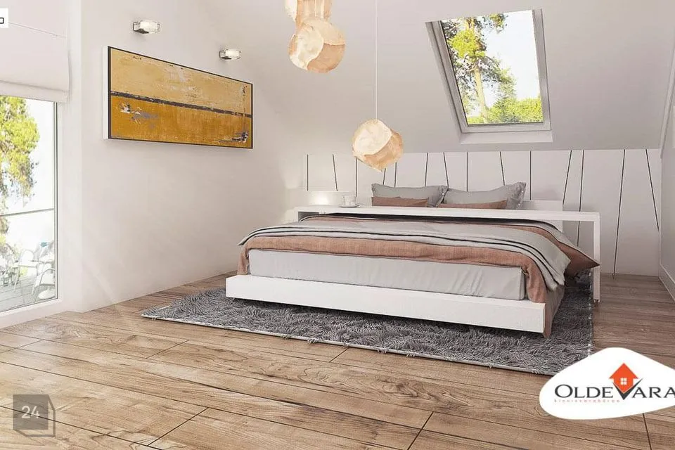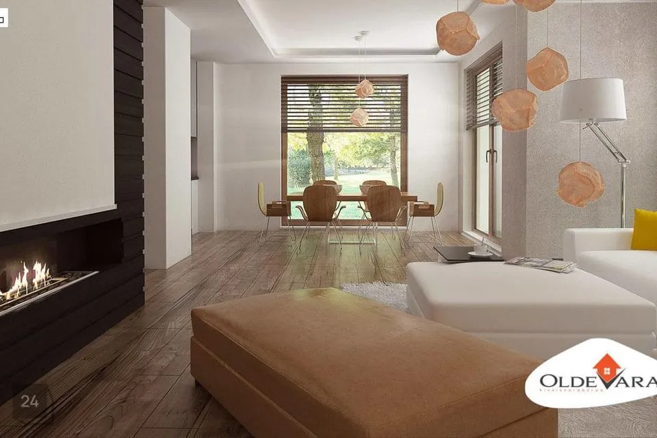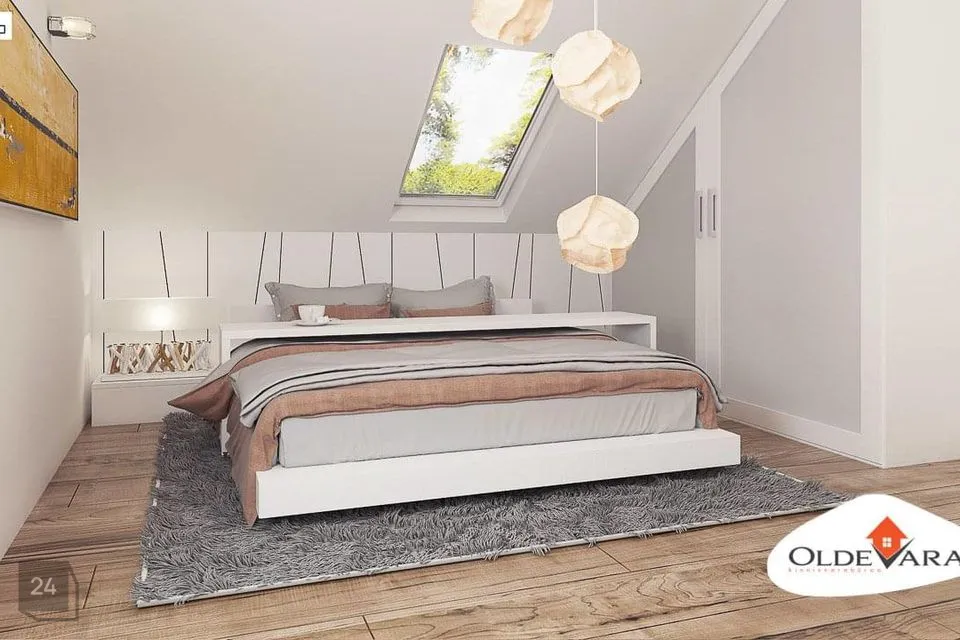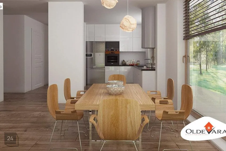 Uue projekti järgi kuuluks maja koosseissu elutuba, köök, 3 magamistuba, kabinet, esik, tehniline ruum, saunakompleks, 2 wc-d/dušširuumi.