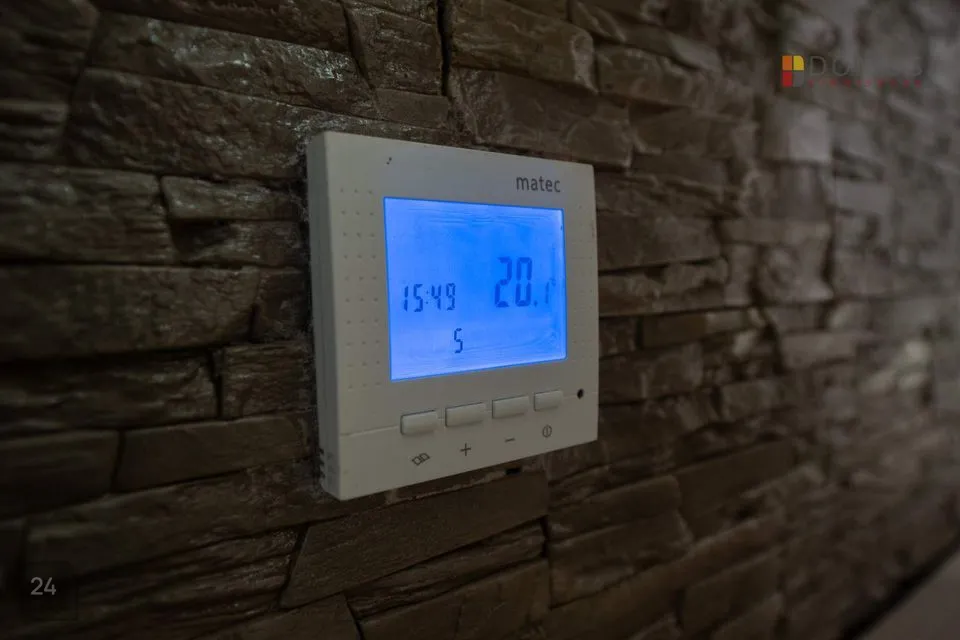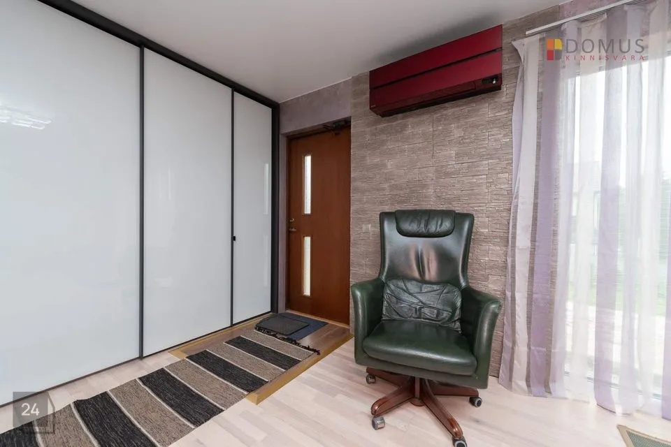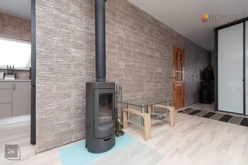 Kütteks kaasaegne õhksoojuspump ning väike puuküttega kamin.