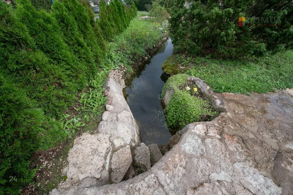 Vana looduslik kraav/oja, rajatud kõrghaljastust , palju noori viljapuud ja marjapõõsad,