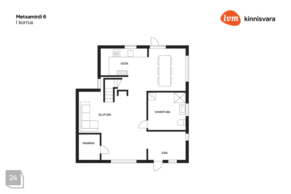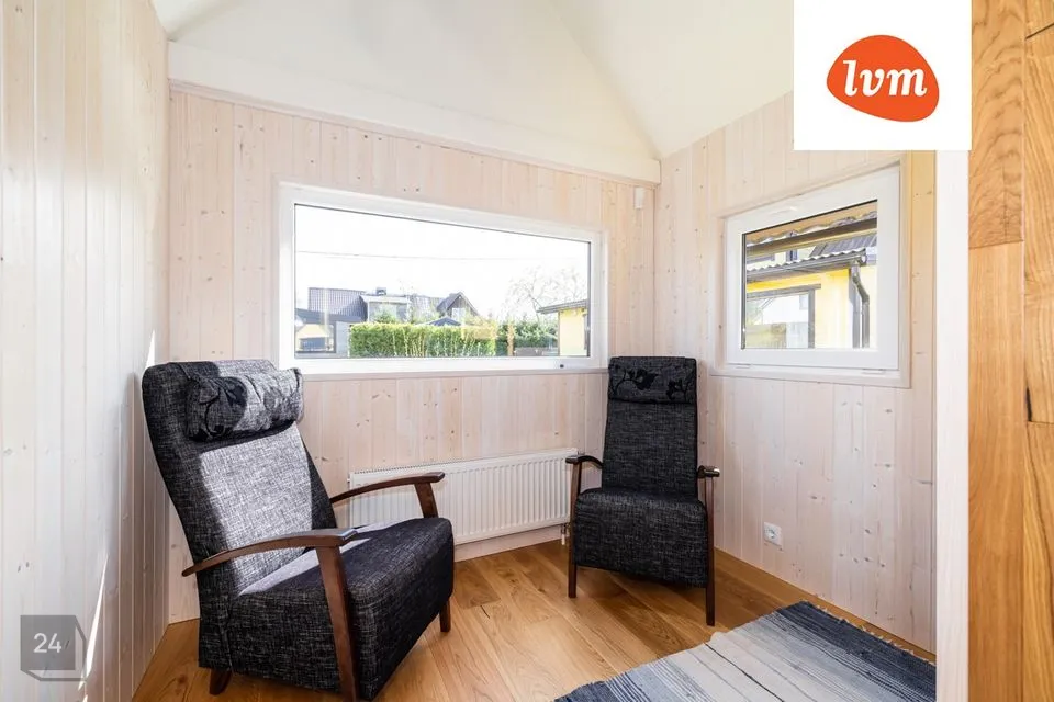 Maja on paljuski sisustatud. Köögimööbel koos kodumasinatega on paigas. Esimesel korrusel on elutuba, köök, söögituba ja duširuum. Teisele korrusele on tehtud kaks magamistuba, üks ühel ja teine teisel pool.