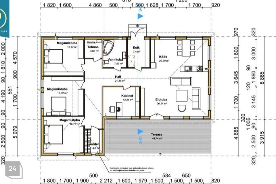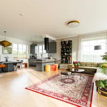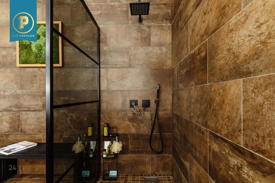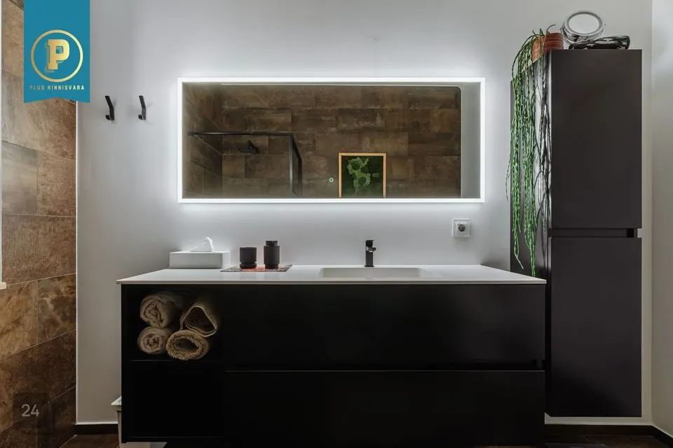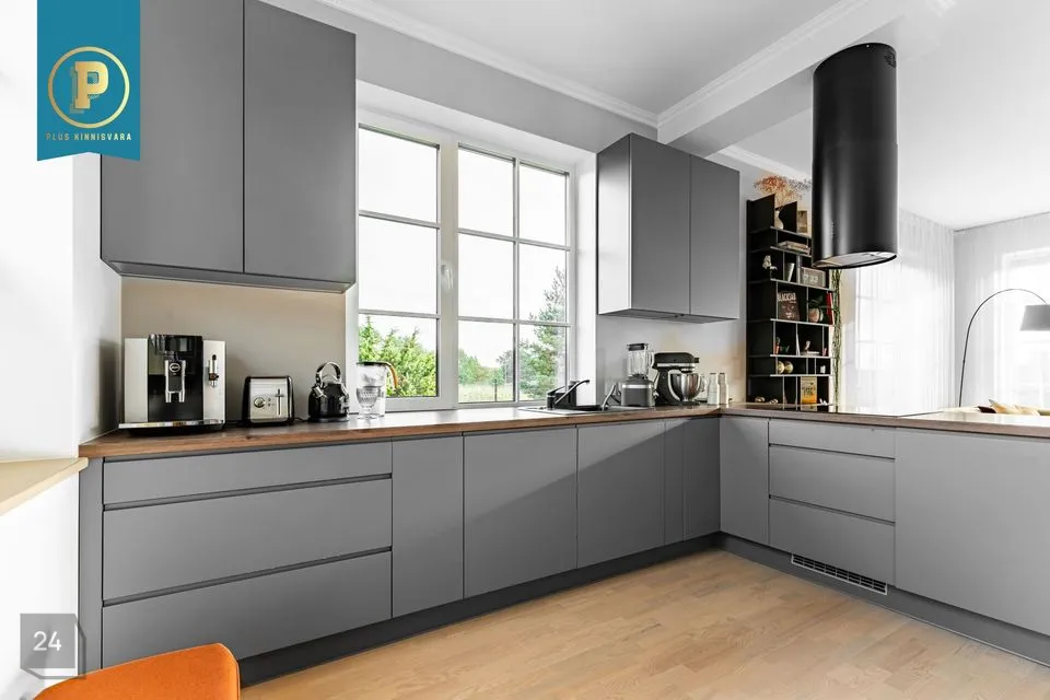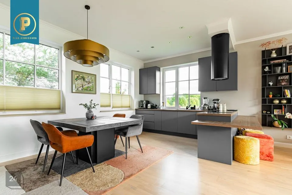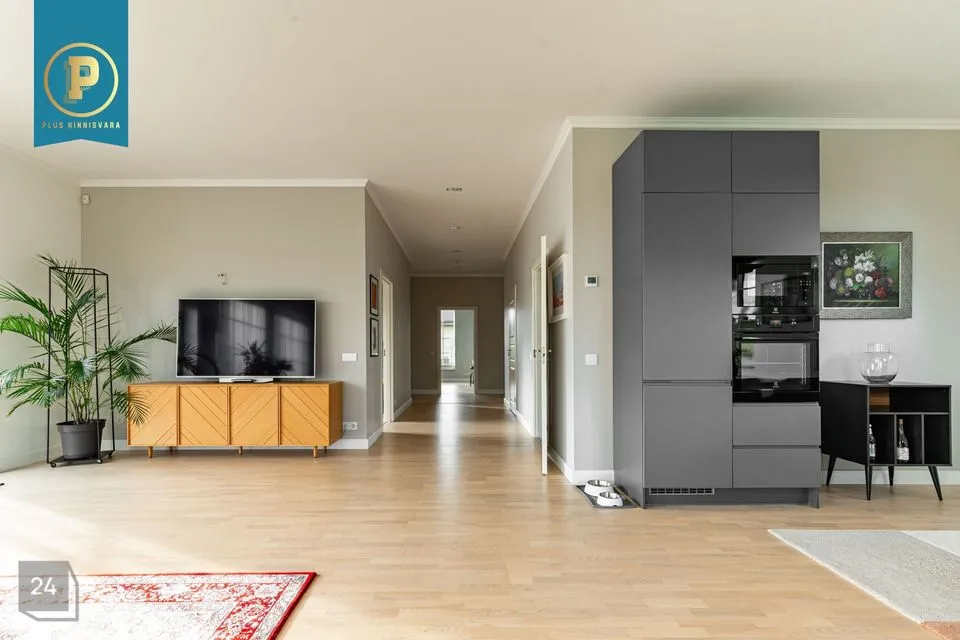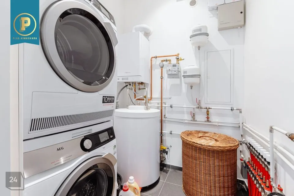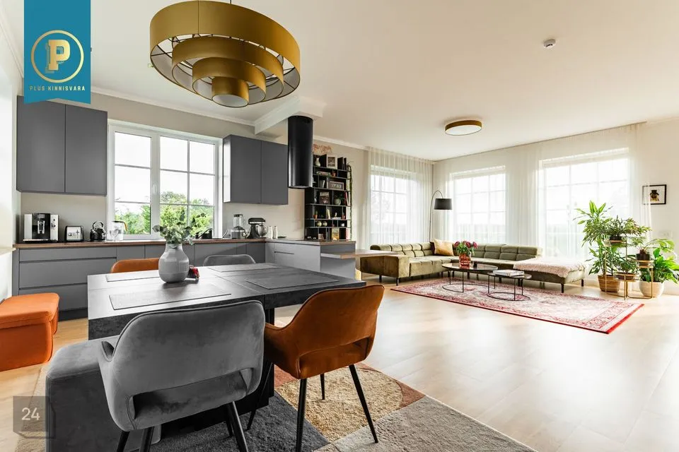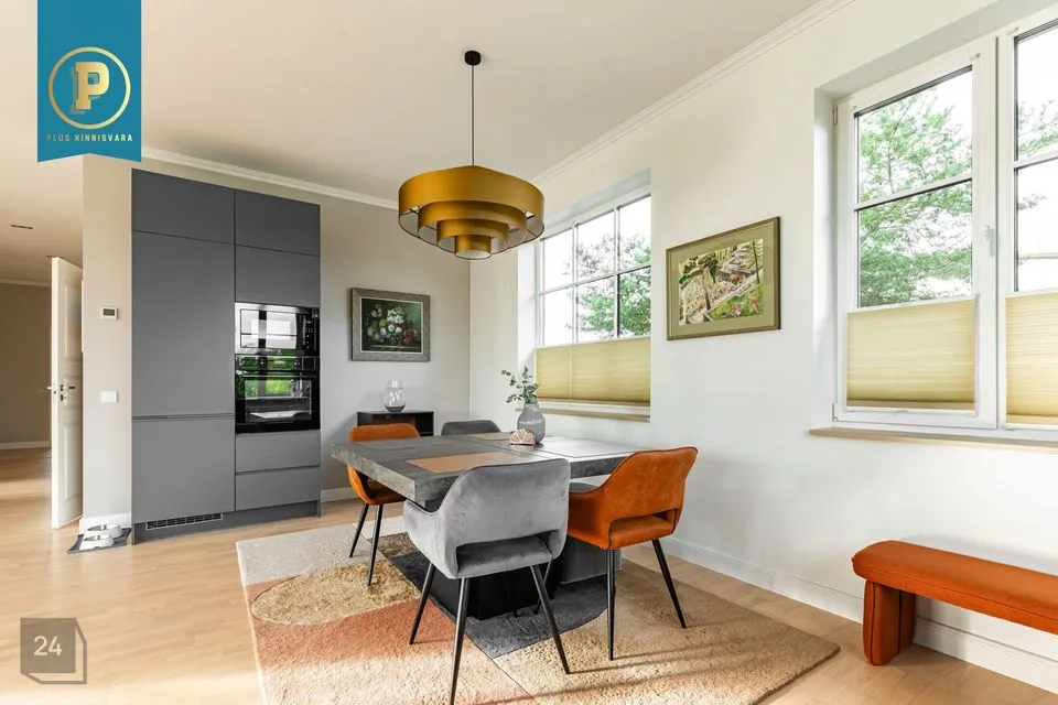 Köögis on kõrgekvaliteetne mööbel koos Electrolux köögitehnika (integreeritud külmik, ahi, induktsioonpliit, lai nõudepesumasin, mikrolaineahi) ja Franke sanitaartehnikaga.