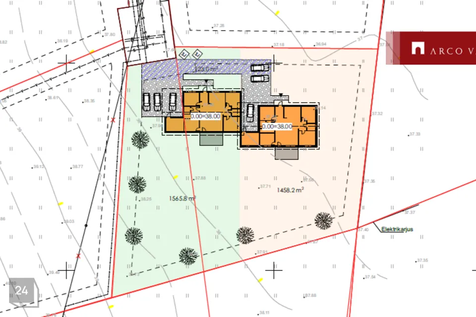 Paarismaja kinnistu on pindalaga 3 025 m², millest konkreetse boksi isiklik kasutusõigus 1565,8 m². Kinnistu ehitusalune pind on 375 m², millest ühe boksi osa on 187,5 m².