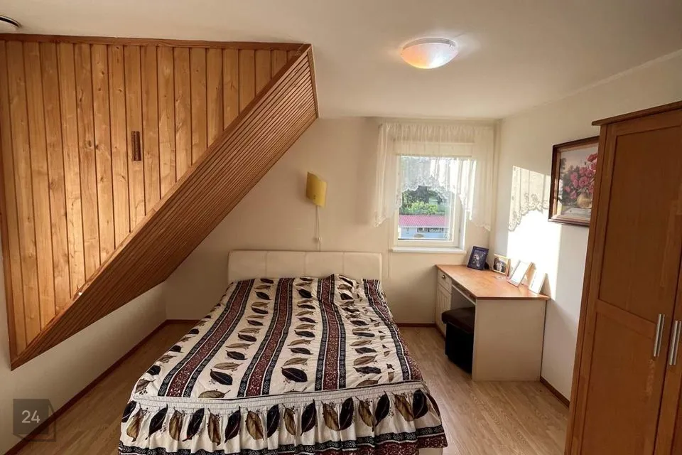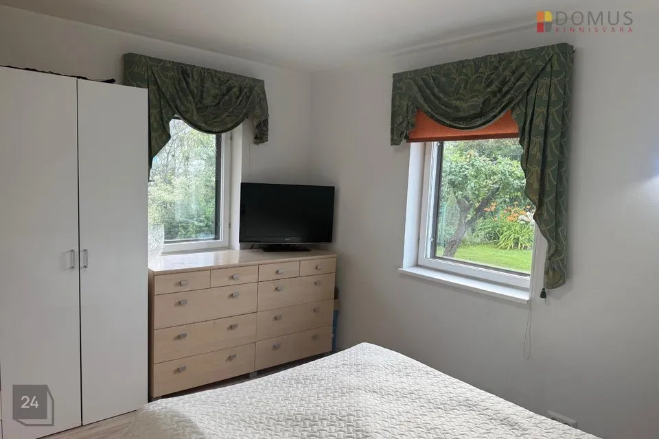 2 valgusküllast 2 aknaga magamistuba koos voodite ja kapidega, mida ühendab läbi maja suur tuba kolme aknaga.
