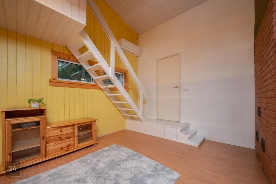 Sinu uus kodu on avatud planeeringuga. Esimesel korrusel asuvad sissepääs, elutuba, köök, vannituba ja kaks magamistuba ning teisel korrusel koridor, kapiruum ja kaks magamistuba. Magamistubade suurusteks on 9m2 ning 12m2 (üleval ja all).