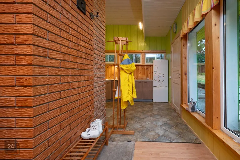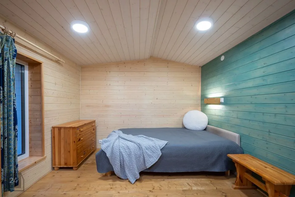 Köögi ja välisukse esine põrand on kaetud PVC põrandakattega, elutoa põrandale on paigaldatud laminaatparkett, alumistes magamistubades on vaipkate ning teise korruse magamistubades laudpõrand. Tubade seinad on kaetud laudisega ning mõnes ruumis värvitud. Vannitoas on kasutatud veekindlat seina- ja põrandakattematerjali.