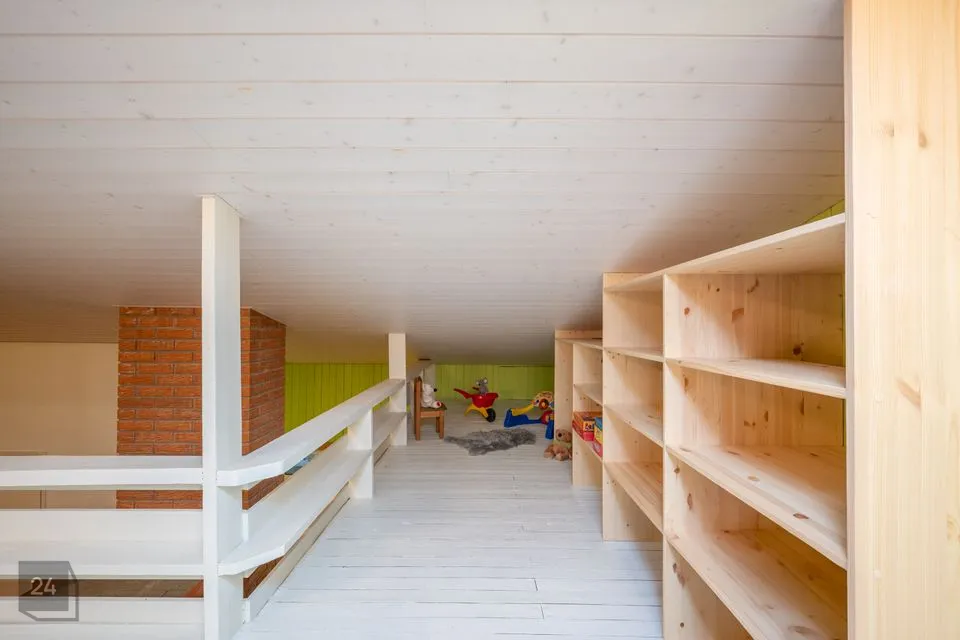Teine korrus on pinnalt pea poole väiksem, kuna elutuba on justkui läbi kahe korruse kõrge. Teise korruse lae alla saab tekitada lastele mängutoa või/ja hubase lugemisnurga iseendale.