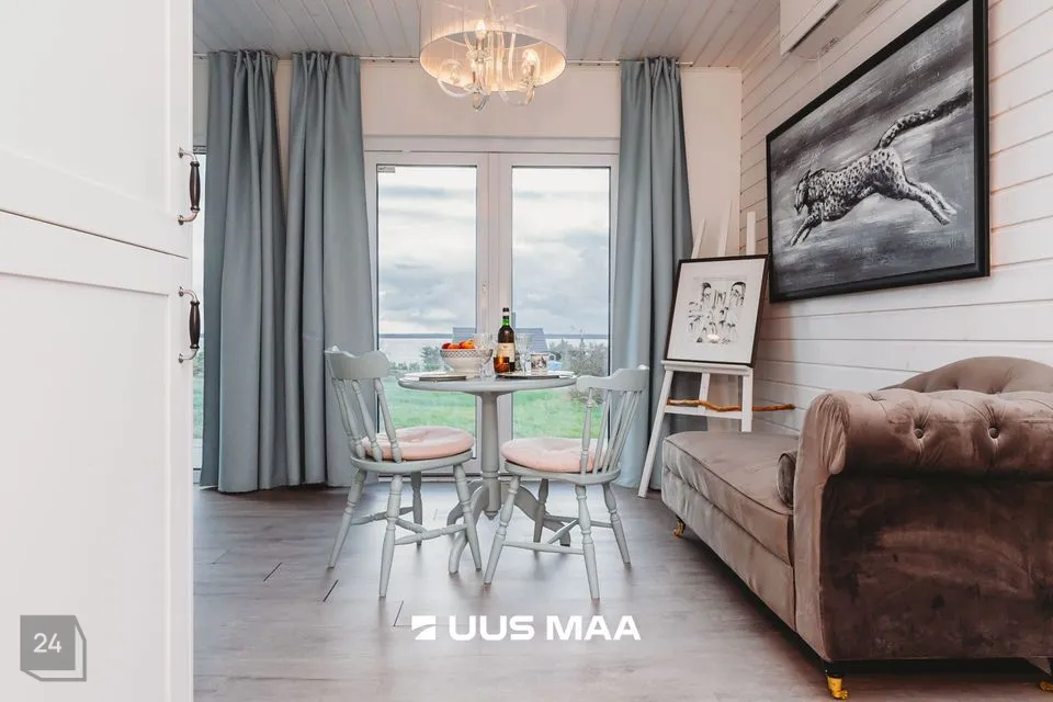 Avatud planeeringuga valgusküllased ruumid, modernne sisekujundus ja täisvarustuses köök loovad ideaalse keskkonna lõõgastumiseks. Iga detail on läbimõeldud, iga nurgake kutsub viibima – olgu see siis hommikukohv terrassil, pärastlõunane lebotamine iglusauna ees või õhtune jalutuskäik merekividel.