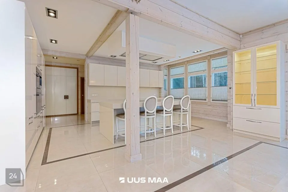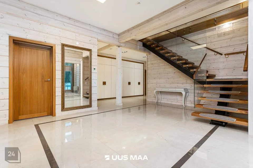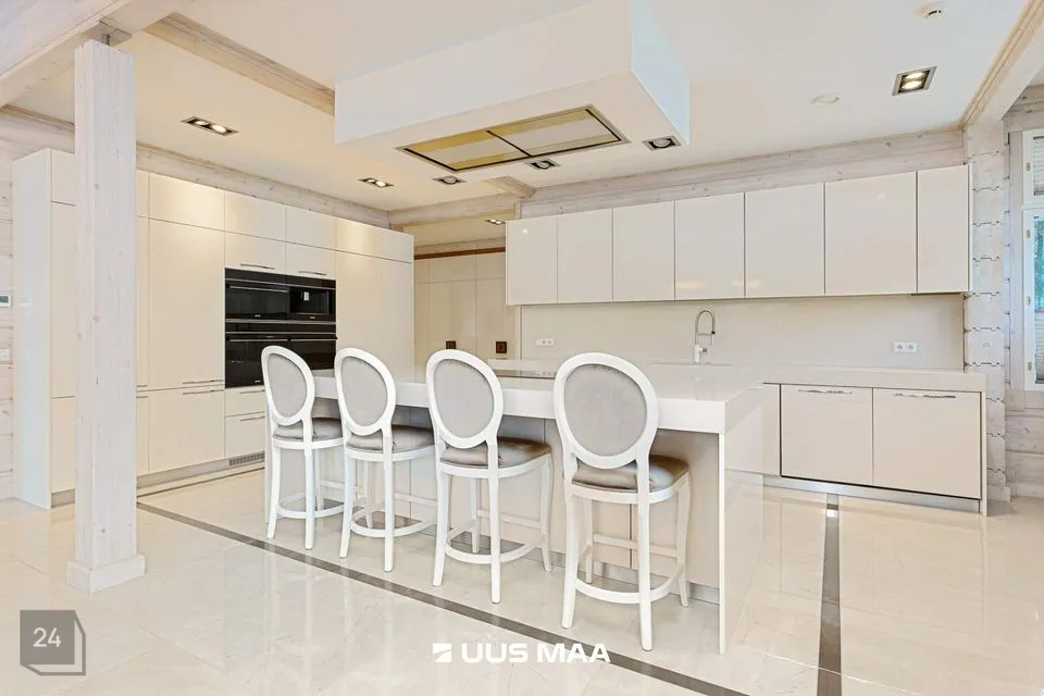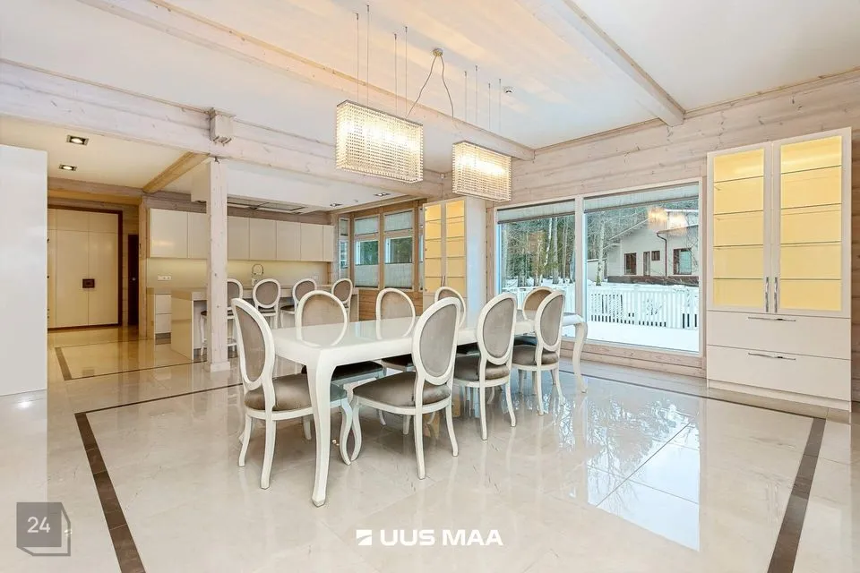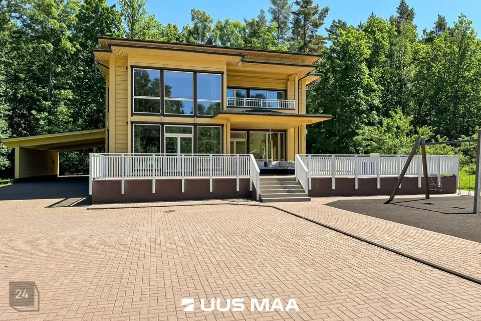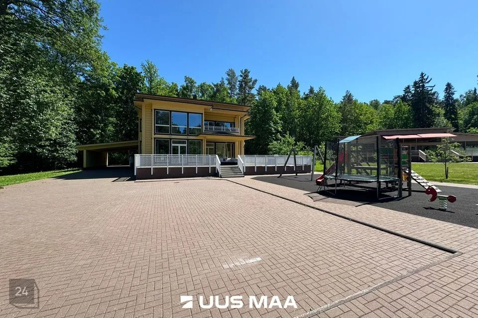 The house is located in Keila municipality, in Meremõisa village, in the former summer and recreation complex of the Estonian Republic Government. The private house is situated on a closed, 24/7 guarded territory. Privacy is guaranteed - the house is located on a dead-end street and borders a small forest.
