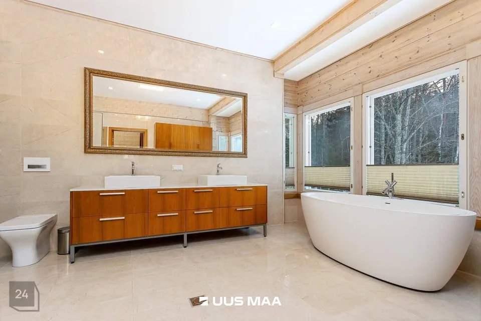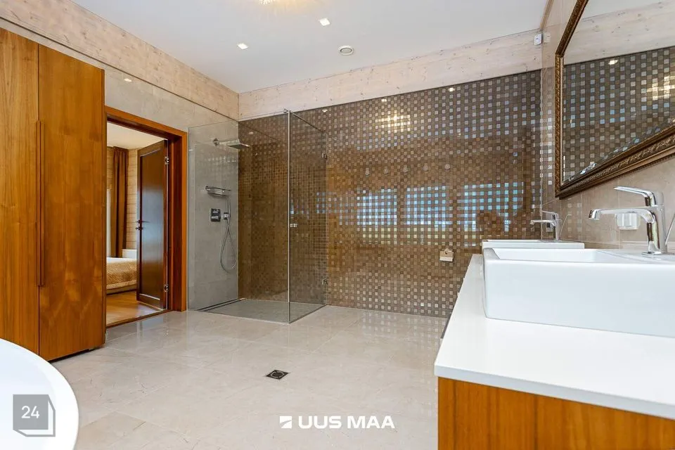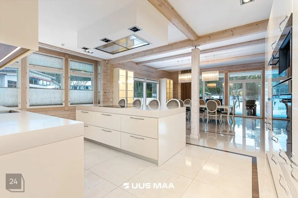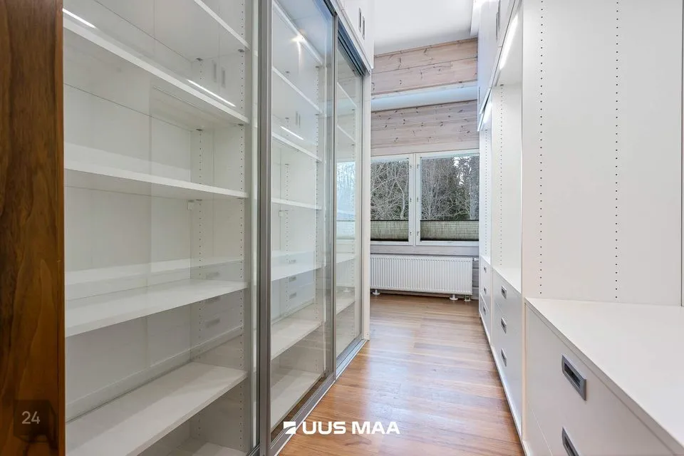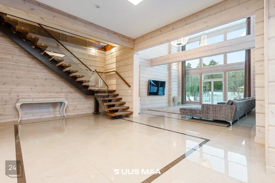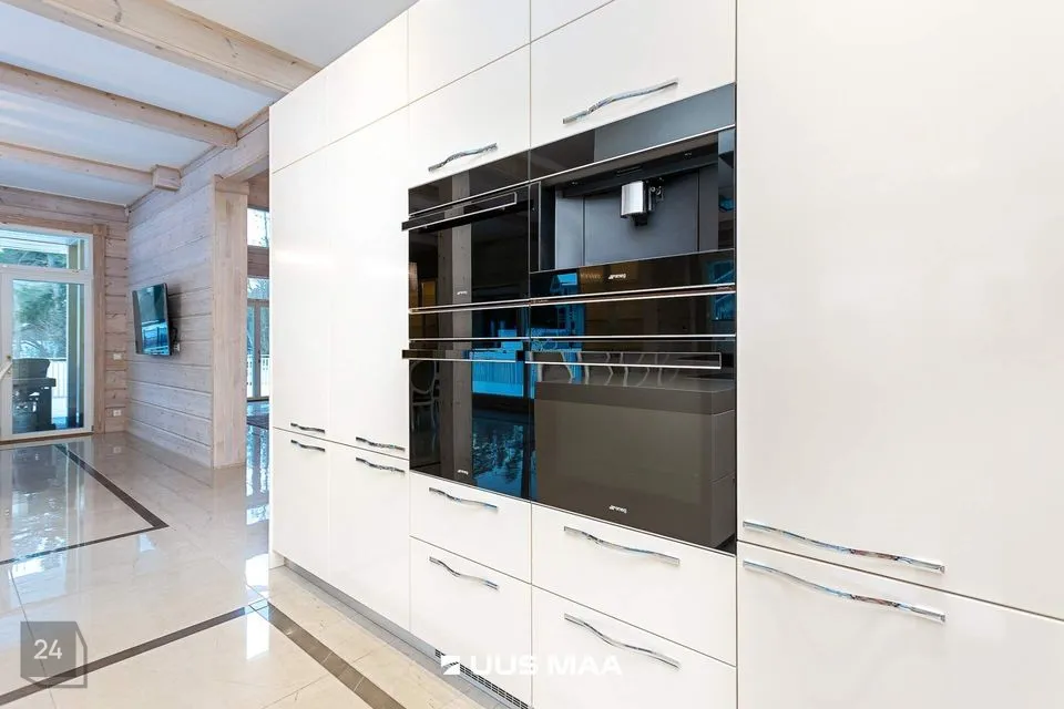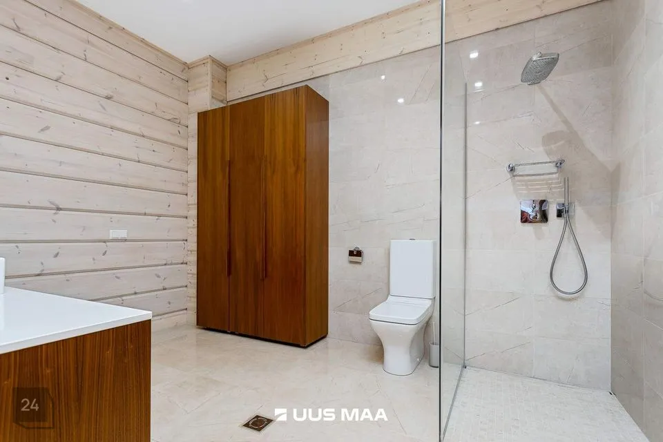The house is located in Keila municipality, in Meremõisa village, in the former summer and recreation complex of the Estonian Republic Government. The private house is situated on a closed, 24/7 guarded territory. Privacy is guaranteed - the house is located on a dead-end street and borders a small forest.